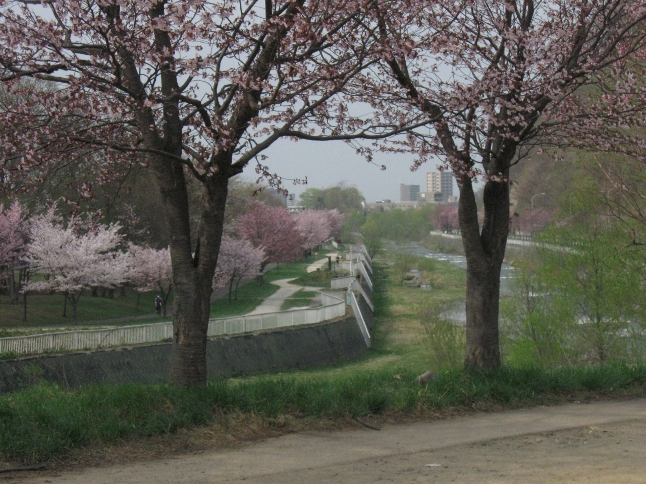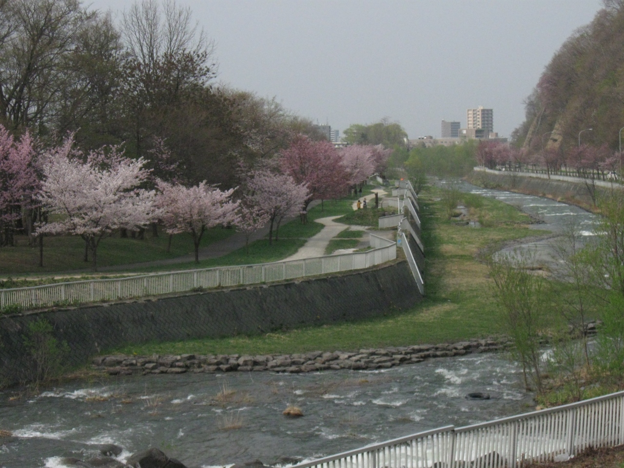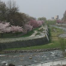 公園とは川を挟んだ対岸側にも桜が連なっていて、例年にないきれいな景色を撮ることができました。