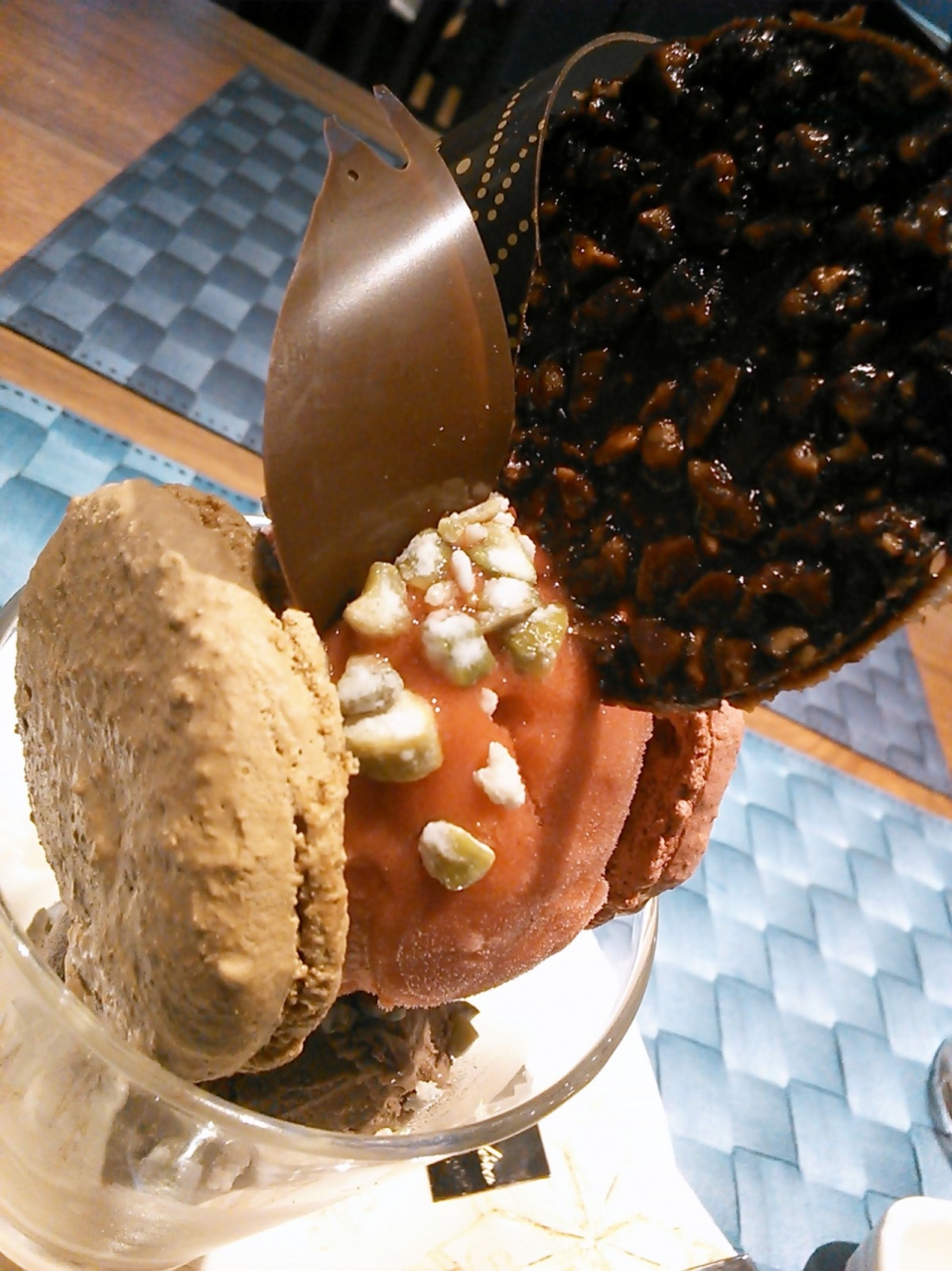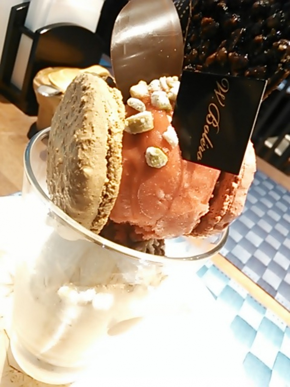 最初の時はキャラメルアイスクリームにマンゴーのソルベ。甘ったるくないけどキャラメルの風味は濃厚。マンゴーのソルベも口当たりがとってもよくて大満足(*^^*)