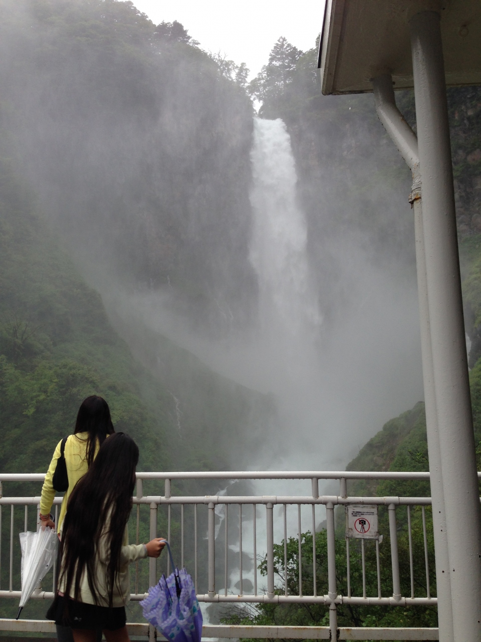 雨の日は、水しぶきが観瀑台に降り注ぎます