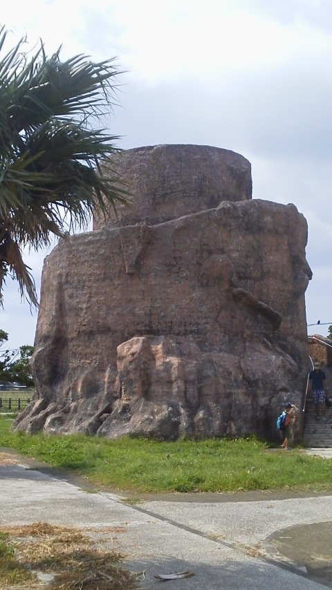 石垣の離島ターミナルから高速船にのってたどり着いたのが、ちょっとマニアックでマイナー的な”黒島”ですが、ここの玄関口である黒島港の近くでレンタサイクル屋さんで自転車を借りて島内を散策したら、島の中心ちかくにある黒島小中学校があり、その近くにあるのがここ「黒島展望台」。この展望台に上り、まわりを見渡すと平坦の風景をみることができます。とてものどかな風を感じることができます。この黒島には、あまり有名スポットが少ないので、この展望台も立派な観光スポットになっていますね。自転車でこいでいてちょうど疲れた時にもなりますので、展望台でひと休みもいいかもしれません。