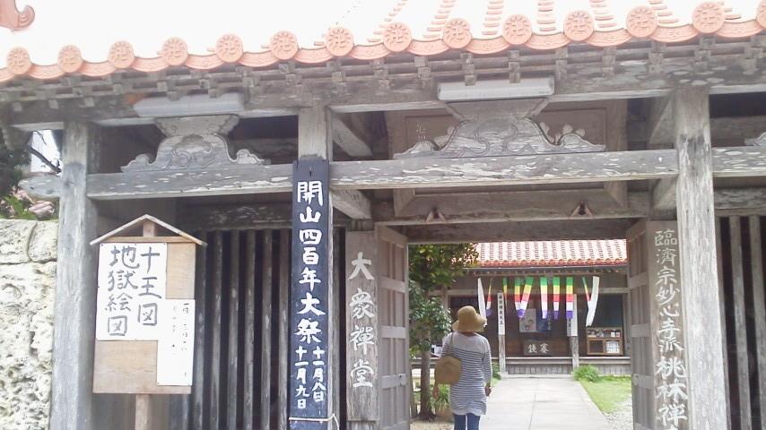 石垣の市街地にあるお寺がここ「桃林寺」。なんでも、ここは権現堂とともに創建された臨済宗の寺院であり、なんといっても特徴的なのでが、山門の左右一対の仁王像が有名とのこと。創建からちょうど400年程度の歴史ある寺院で、沖縄では最古の寺院とのこと。この桃林寺は市街地の道路の角に君臨しているため、市内を車で通るたびに目に入るほどのロケーションです。ここは、檀家さんがいないそうで地元の方々の寄付なども重要な要素になっているそうです。また、今回訪れた時が1年に1回(しかも3日間のみ)の閻魔様などの掛け軸などの公開された時期であったため、丁寧に各掛軸の説明をして頂きました。その10種類の掛け軸は約100年前のものとのこと。8月上旬に行かれるならば、是非拝見しておいた方がいいですね。今ではビデオでの上映もしていました。
