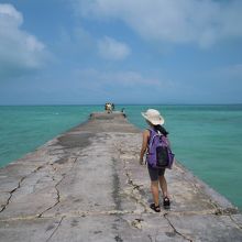 八重山エリアの石垣島の離島ターミナルから高速船にのってあっという間に着くのが竹富島。この竹富島で西側で、..海に突き出ている桟橋がここ「西桟橋」。この桟橋に行くと、広がるエメラルドグリーンの海を見渡すことができます。レンタサイクルで竹富島内を散策する際には、ぜひとも、この景観はみておkべきですね。この時も、桟橋に腰かけて読書をいている方がいましたが、とても絵になる光景でした。そして、ゆったりとした気分にもなりました。また、夕暮れときにも素敵な夕日を眺めることもできそうですね。