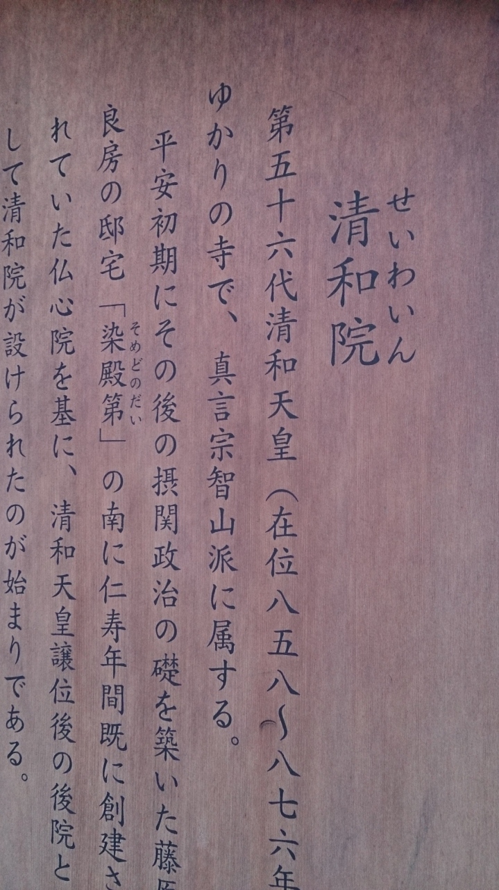 清和院は代々皇子や親王が住し、また在原業平らの歌会の場となっている。清和天皇が清和源氏の祖であったことから室町幕府の足利氏からも深く保護を受けて栄えたのですが御所炎上の際に清和院も類焼しその後現在の位置に移転再興されました。