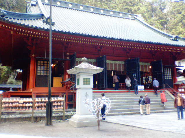 東照宮の他の建物と違い、色とりどりの豪華な装飾や彫刻はあまりなく、壁は朱色、戸と屋根は黒とシンプルな感じが逆に新鮮でした。