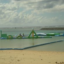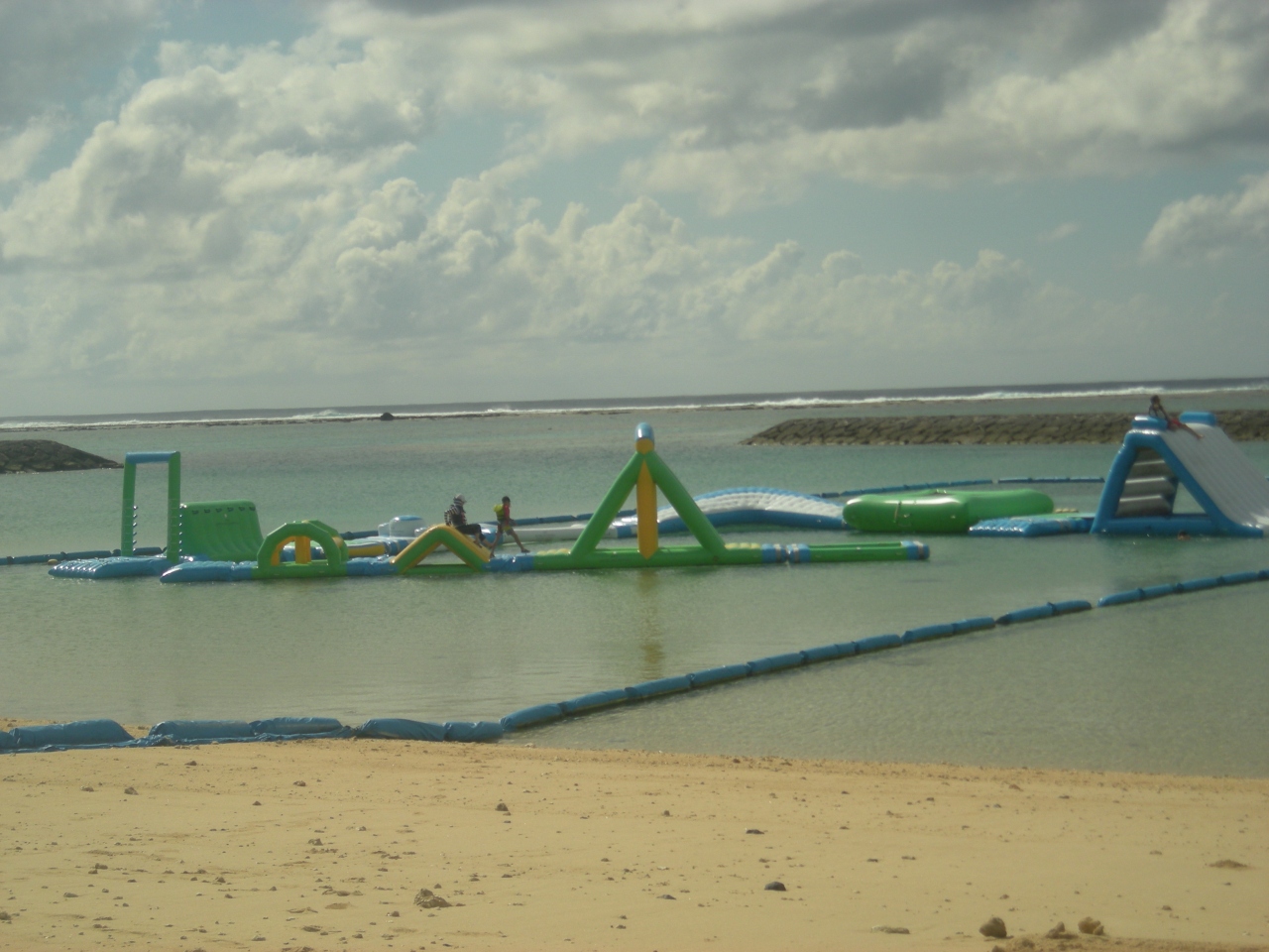 石垣島の市街地からほど近いところにある”ANAインターコンチネンタル石垣リゾート”内というか宿泊者以外でも訪れることができるビーチがここ「マエザトビーチ」。市街地からおそらく一番近いところにある素敵なビーチで海を囲いにおおわれているので、最近多く出没しているクラゲ対策もばっちりです。そのため、波をおだやかなので、安心して子供たちを遊ばせることができます。また、監視員さんもおり、各種遊びも(有料ですが)可能なので、1日過ごしていいくらいです。まさに、リゾートビーチって感じですね。