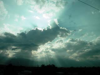 しばらくは梓川に沿って進み、ちょうど日暮れ時で雲間から光芒が広がっています。聖高原駅で運転停車して、次はスイッチバックの姥捨駅で停車して、善光寺平に向かって下っていき、篠ノ井駅は通過して終点の長野駅に到着しました。