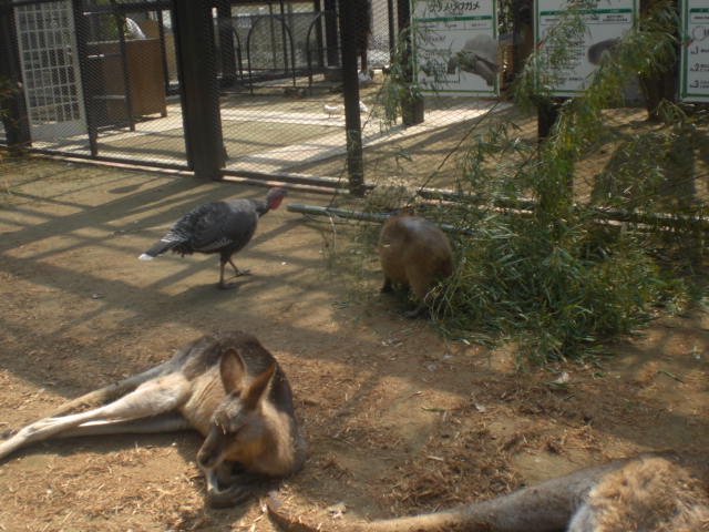 園の中に入ってみると、カピバラやカメ、クジャクやリャマ、ワラビーなどが自由に動き回っていて、触れ合うことができます。また、キリンが当時2頭オリの中にいて、テラスから、バナナやニンジンなどのエサを、直接キリンたちのお口に入れてあげることができ、子供達は何度もあげていました。