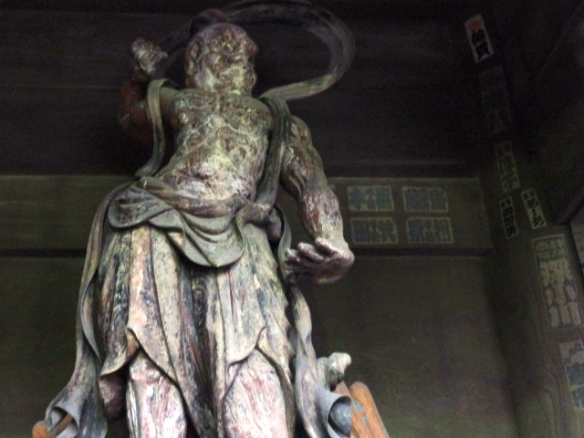 成田山新勝寺(なりたさんしんしょうじ)の仁王門は国の重要文化財で参道から大本堂へ至る急な階段の途中に建つ入母屋造の八脚門で1830年に建立されている。