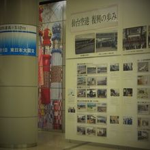 到着ロビーに「復興の歩み」の展示があります。