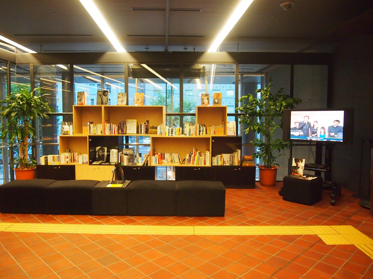 2014年8月~11月3日に、1階吹き抜けのアトリウムで見られる、パブリックビューイングと窓ガラスの作品「浮かぶ」を見るために行きました。とても綺麗でした。