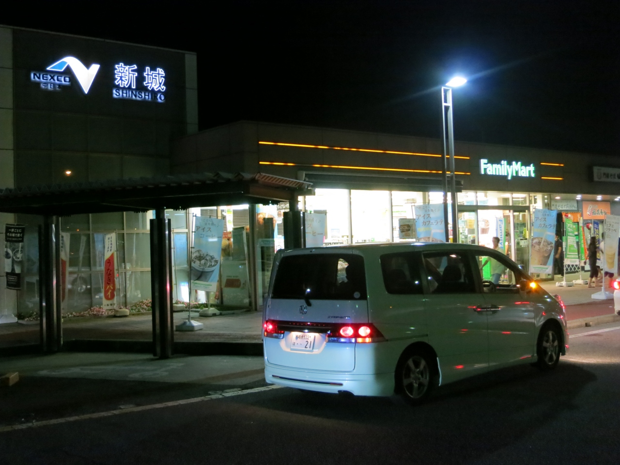 深夜1時過ぎに休憩に寄りました。新東名と東名高速道路が合流して、最初にあるパーキングエリアです。帰省ラッシュで、新東名と東名の合流辺りが10km以上の渋滞、こちらの駐車場が24台しかない小さなパーキングも、真夜中にかかわらず大混雑していました。小さなパーキングエリアですが、24時間のコンビニ(ファミリーマート)と、8:00~20:00までやっている軽食コーナーがあるので、便利です。