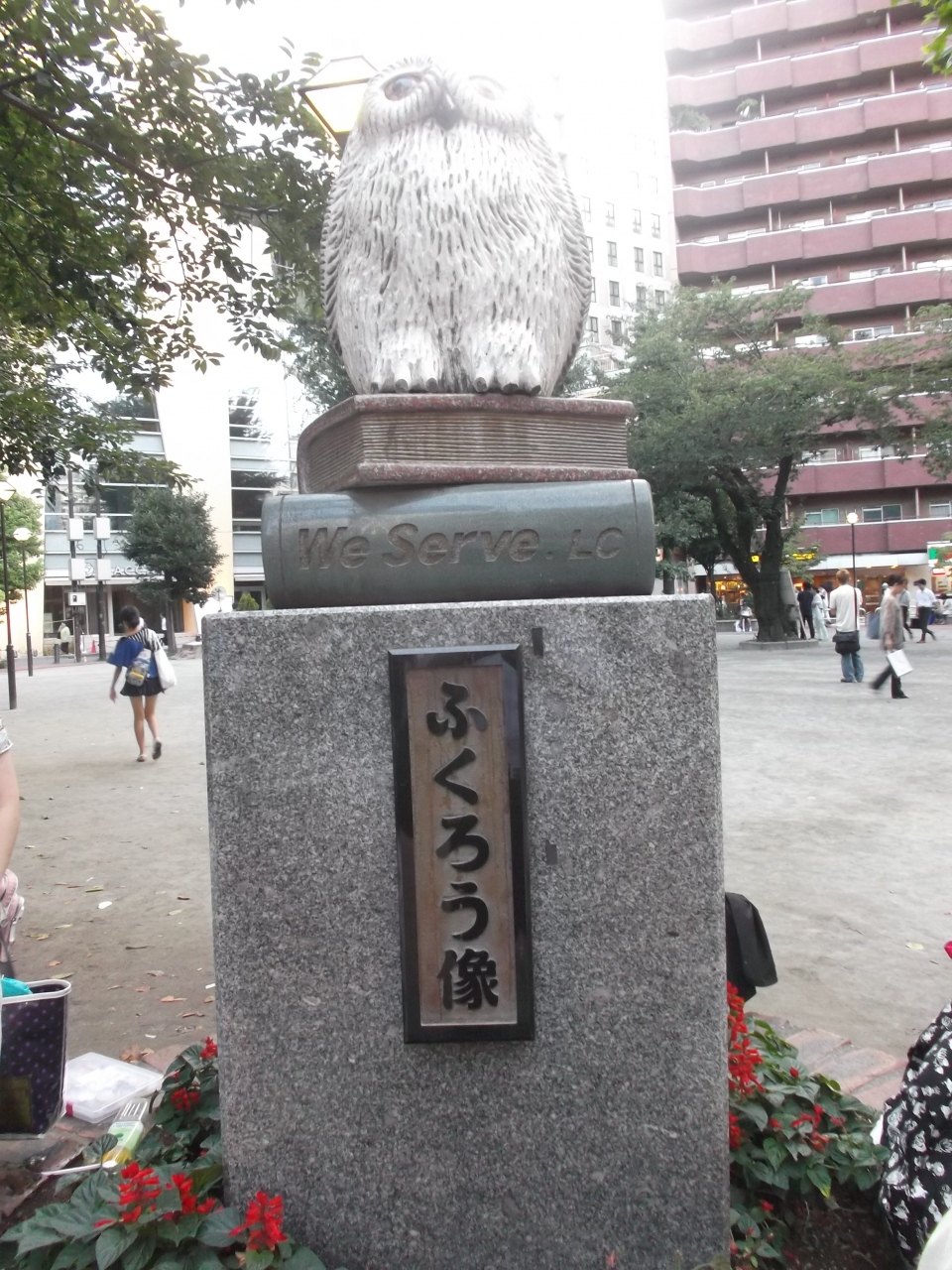 東池袋1丁目・豊島公会堂(豊島区民センター)の前にある公園です。入口に白いフクロウの像が建っており、周りに待ち合わせ人がたむろしています。ベンチなどで休んでいる人も多い。場所柄、子供の姿は見かけない、大人の公園って感じですかね。