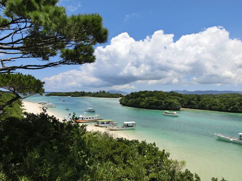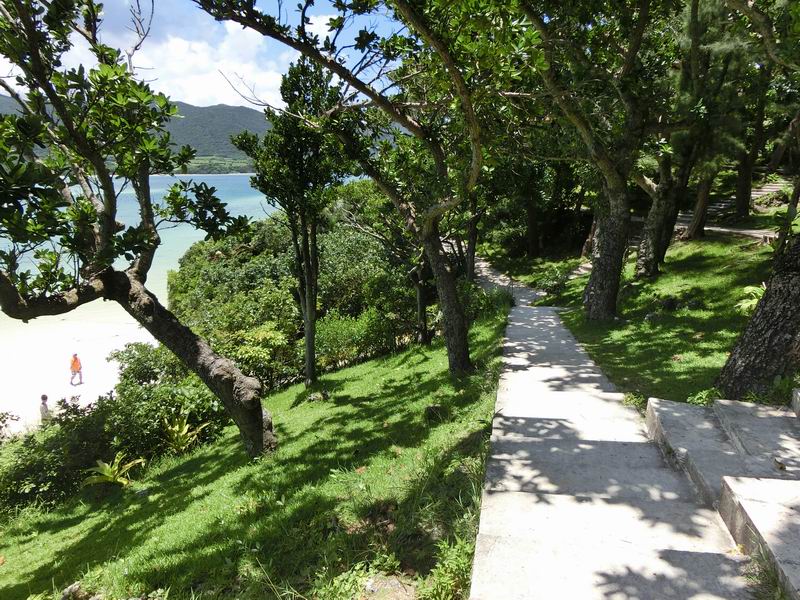 駐車場が北側に拡張され以前よりだいぶ広くなってました。元からある駐車場の周りにグラスボートなどの店舗が並び、参道入口に灯籠のある観音堂の脇を奥へ行くと、木々の間を遊歩道が通っています。一番奥まった所に東屋のある展望台があり、ここからの景色はガイドブックやポスターなどでもおなじみ。展望台だけで満足して帰らず、ぜひ砂浜へ下りて近くでも見てみてください。