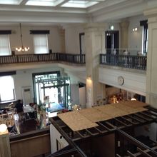 地下に銀行の分厚い扉の金庫跡があり、建物自体の見物も興味深いです。