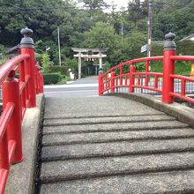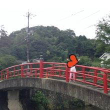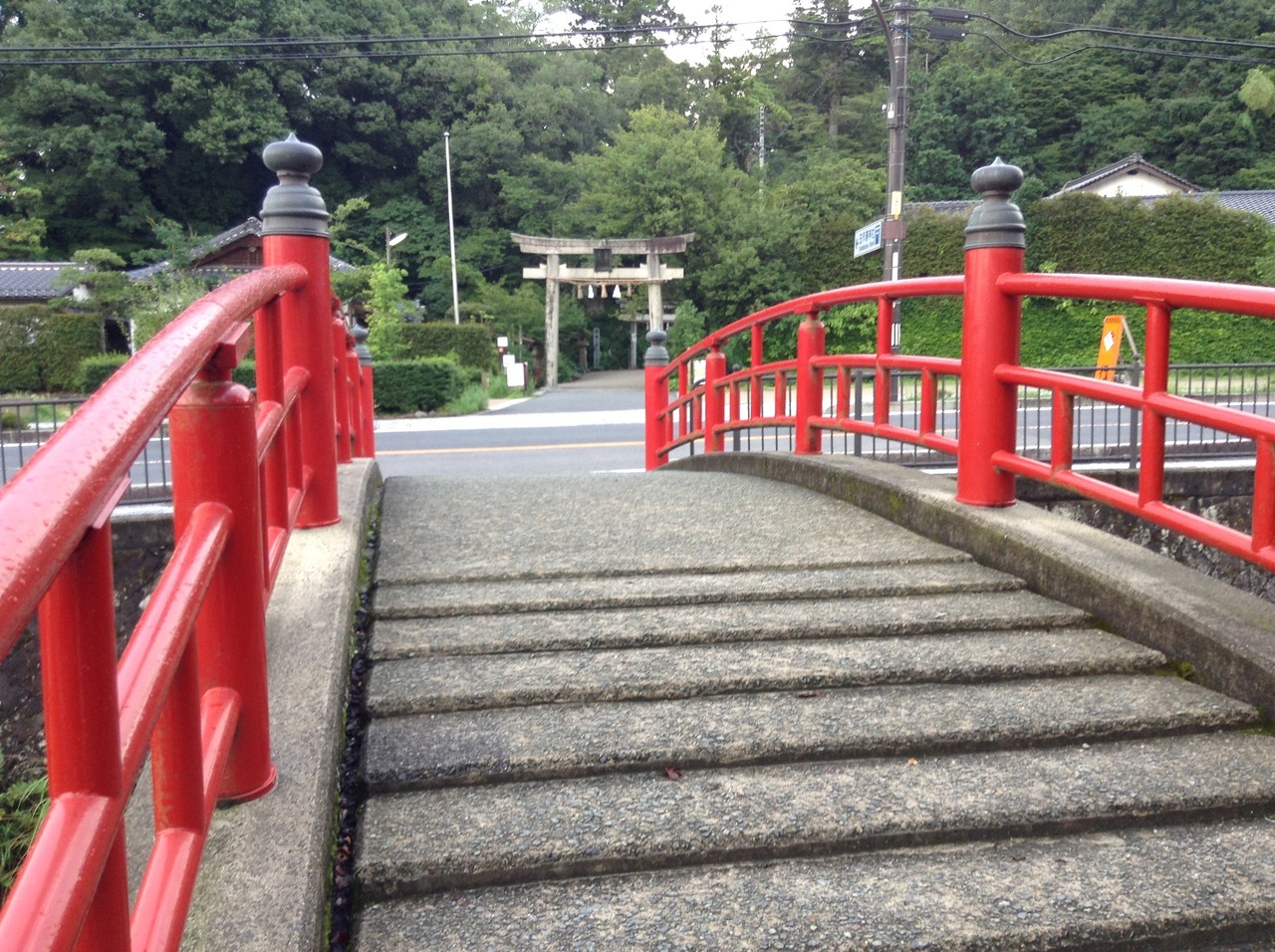 宮橋は、別名を恋叶え橋ともいう赤い欄干の橋で、これを渡ると玉作湯神社に着きます。
