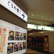 正面にはみやげ横丁があり、右手にはぐるめ横丁があり、まっすぐ進むとビッグカメラがあります。