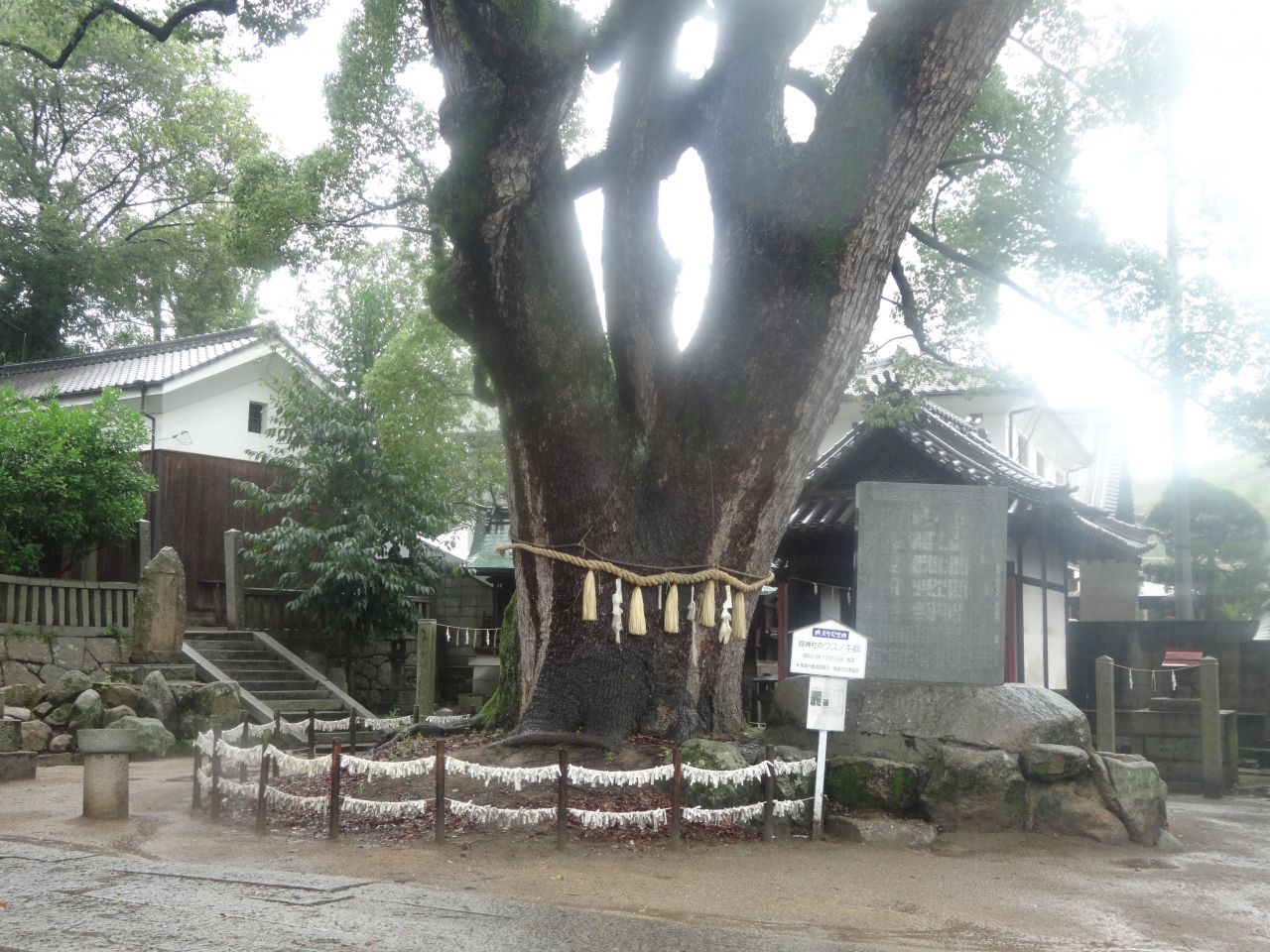 ロープウェイ山麓駅の乗場のところにある尾道で一番古い神社と言われている。境内にある樹齢900年の楠の巨木が有名で、映画「時をかける少女の中で、タイムスリップして、両親と出会うシーンがここで撮影された。他の映画にもよく使われるほど雰囲気のある神社である。ロープウェイに乗る前に覗いてみるのがよい。