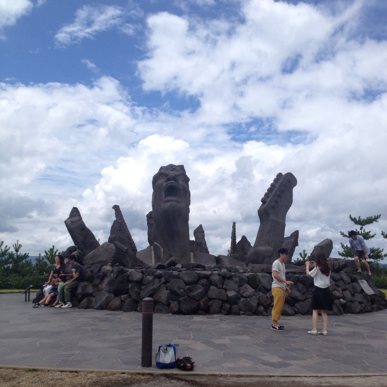 桜島溶岩で作られた巨大なモニュメントがあり、ここで記念写真を撮るのが定番になっているようです。