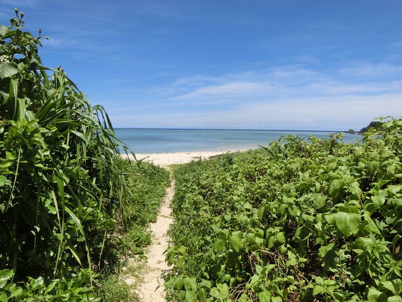 平久保崎に行く際に明石食堂でお昼を食べ、その時海岸にも寄ってみました。明石食堂から歩いても行けます。草木のトンネルになった道を抜けると海岸に出ます。波がほとんどなく穏やかな海で、海の中は入ってないので不明ですが、見たところ透明度は高い感じです。海岸にいる間は誰もいませんでした。