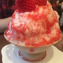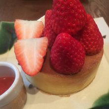 焼き立てパンケーキがおいしいのですが、厚みがあってスフレみたいです。