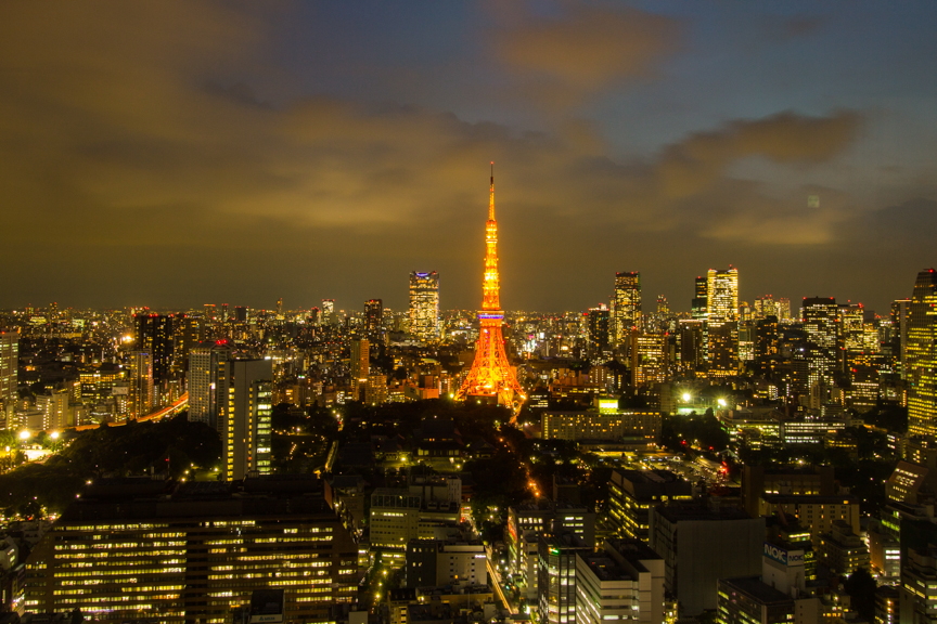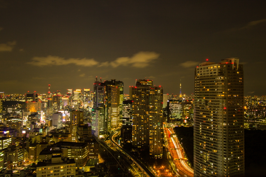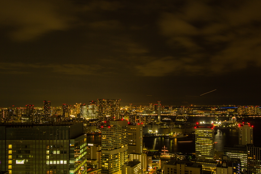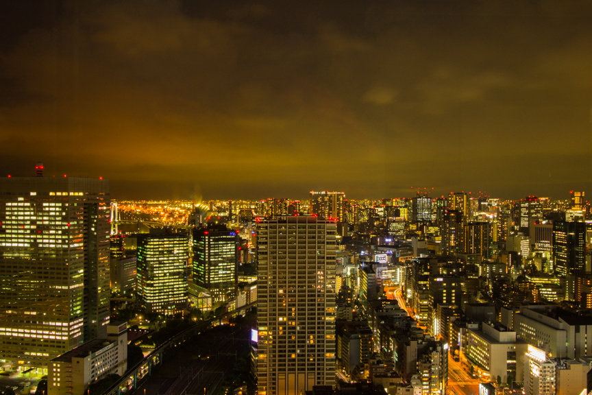 浜松町にある世界貿易センタービルからの東京の夜景。東京タワーを入れた夜景を撮りたいと情報集めをしたところ、このビルから360°の東京を見ることが出来るみたいで訪れました。窓ガラス越しですが、室内は暗くなっていますので、雰囲気も素敵です。