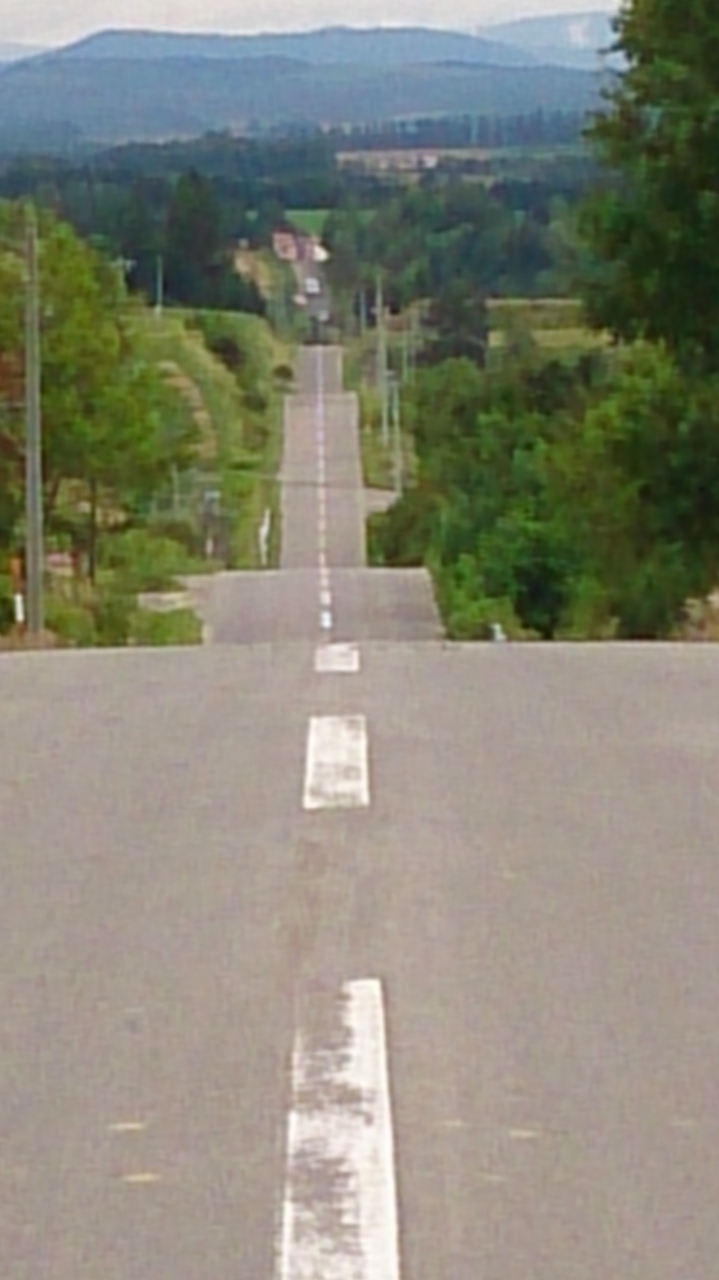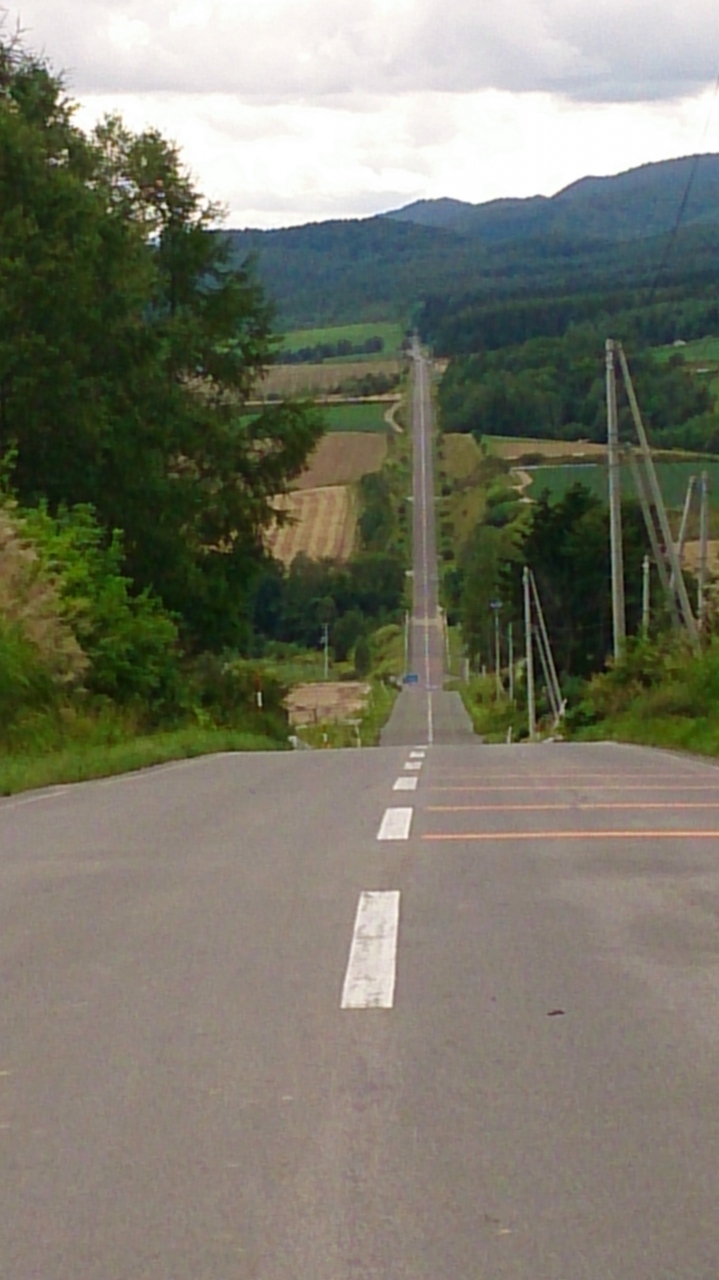 今回の旅行でも斜里の辺りにも起伏のあるまっすぐな道はありました。