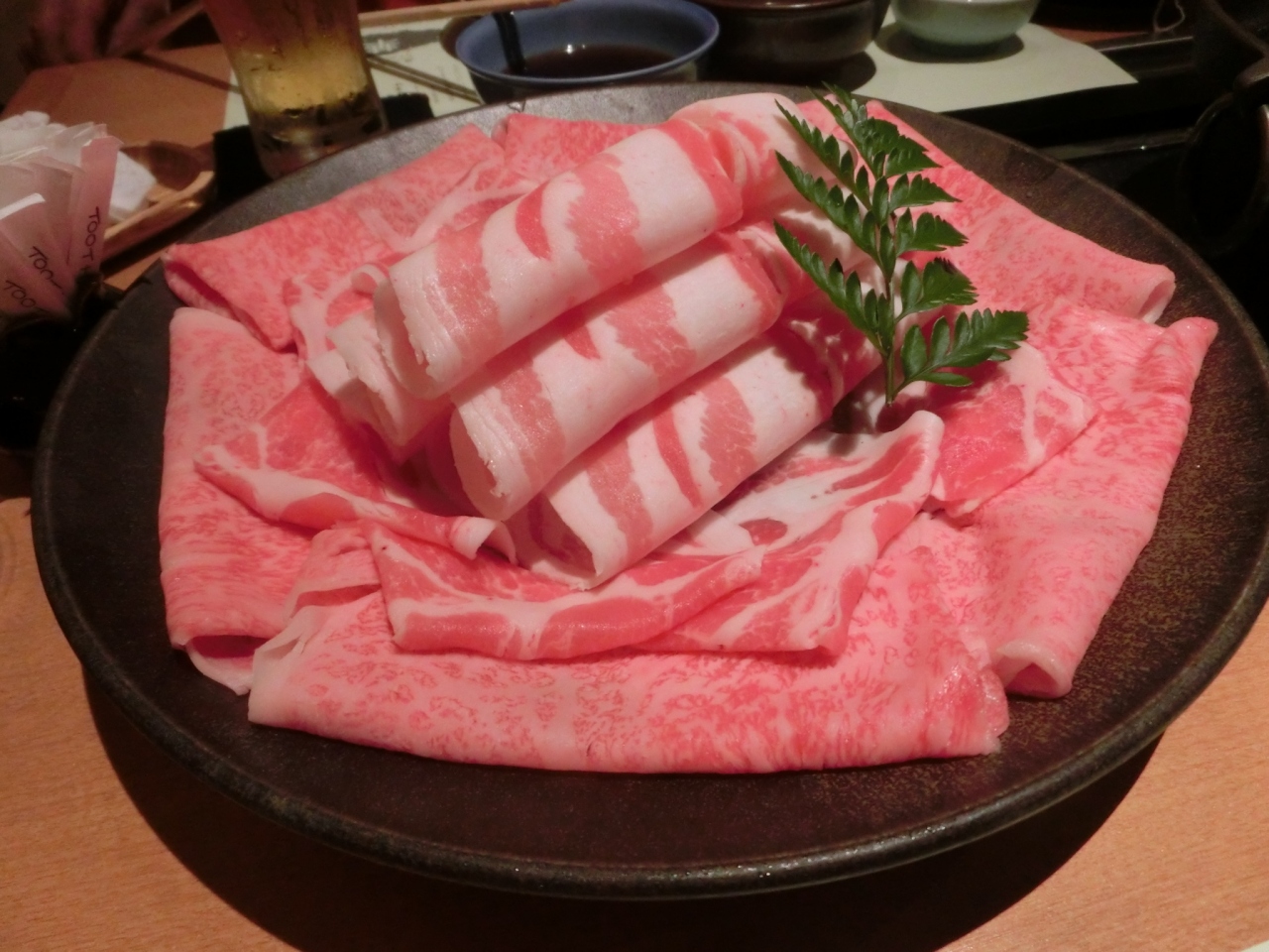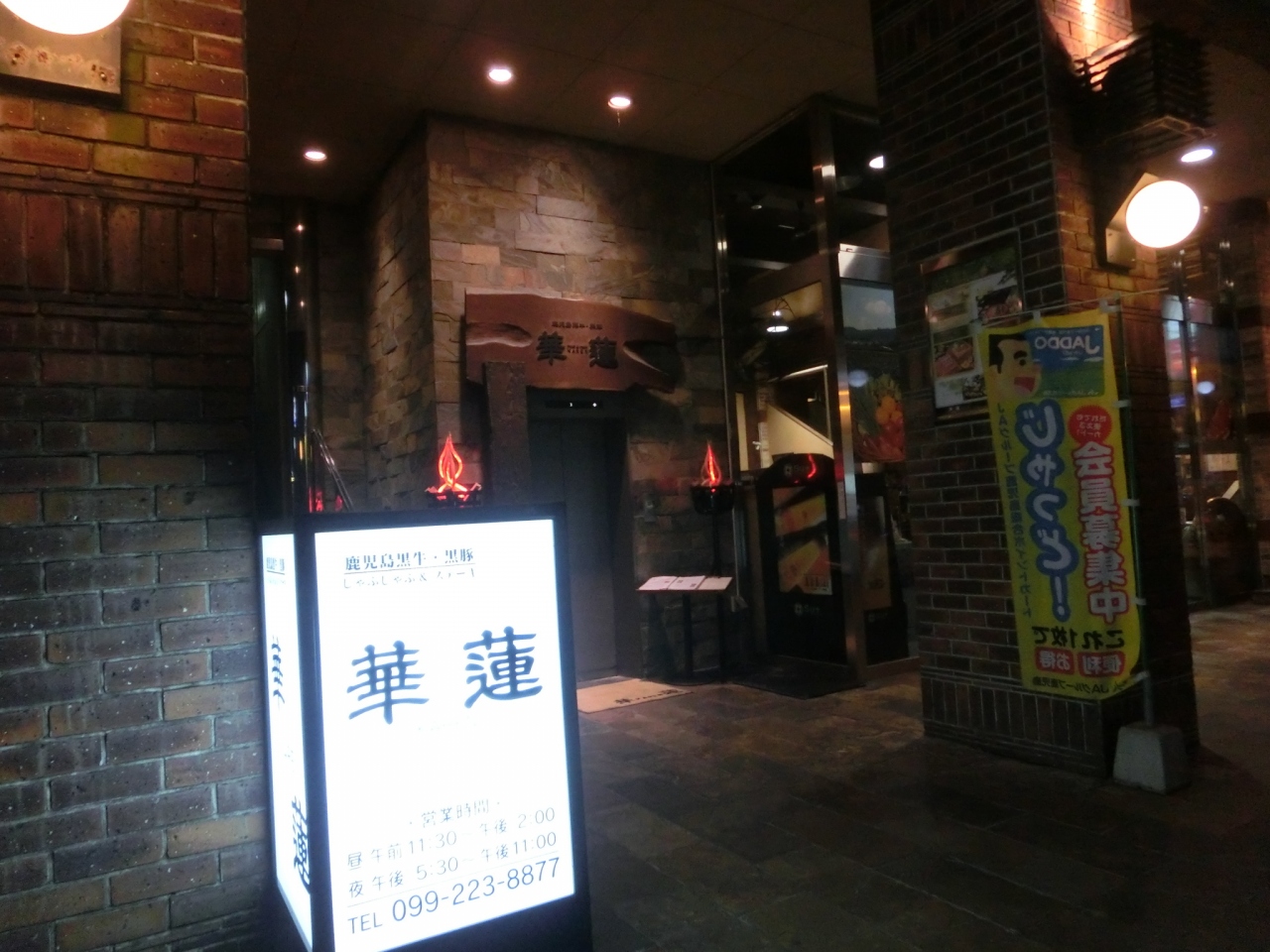 何軒かの豚しゃぶ処の選択に迷いましたが、華蓮にして本当に良かったと思います。事前に予約をして行ったのですが、当日は入口に満席と表示してあり、予約をしていて良かったです。黒牛、黒豚のしゃぶしゃぶセットを予約注文していました。きびなごのお刺身は是非食べたいと思い、現地で直接、別に単品でオーダーしたところ、当日はないとの事で、その点はとても残念でした。ですが、しゃぶしゃぶは満足以上。牛しゃぶの美味しさはもちろん、豚は少々臭みがあったりするものですが、それが全く感じられません。とろけそうで、とても味わいのある豚で、感動する程でした。タレは2種類。胡麻ダレと、ポン酢ダレが用意してありましたが、個人的には胡麻ダレが好きでした。ですが、私の家族はみんな、ポン酢がいいと言っていました。家族全員で、黒豚肩ロースが特に最高だということになり、単品で追加オーダーしました。