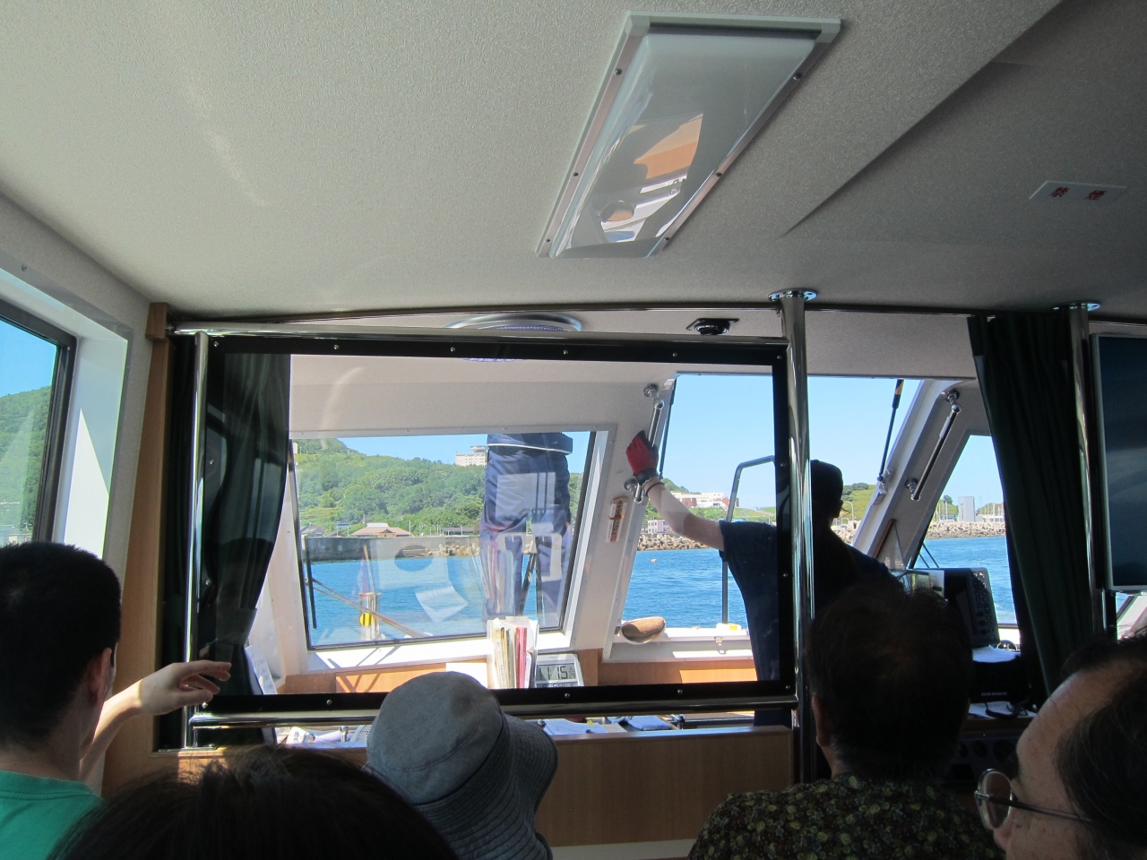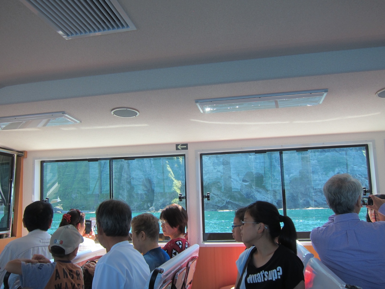 訪れた時には、乗ろうとした便が、乗船の15分前には満席となっていました。電話するだけで予約できるので、希望の便を予約することをおすすめします。予約をしていたので、満席で窓口の行列が無くなってしまっても、チケットを買うことができました。窓口でのチケットの購入は現金のみとのことでした。電話予約の際には、希望の便(時間)とコースを伝えます。出航の15分前を目安に乗り場に到着するよう、依頼されました。なお、席は指定席ではないので、少し早めに乗船の列に並ぶと良いです。席は祝津、オタモイまでの全行程において、全員が座れます。小樽港出港の時で、やはり船の左側から席が埋まっていきます。オタモイ海岸への行きの行程で、崖の景色が見えるからです。また、帰りの行程では、前方のモニターでオタモイ海岸にあった龍宮閣についてやオタモイ地蔵にまつわる悲話などが上映されていたので、景色以外にも興味のある方は前方の席がよいかもしれません。
