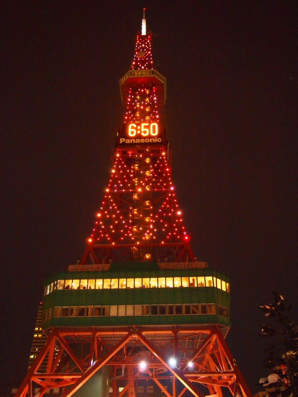 大通りにあり、目的地にむかう途中に近くを通ったりしますので、昼と夜と両方みました。夜はライトアップされており、赤や紫、青にうつりかわるのでキレイです。