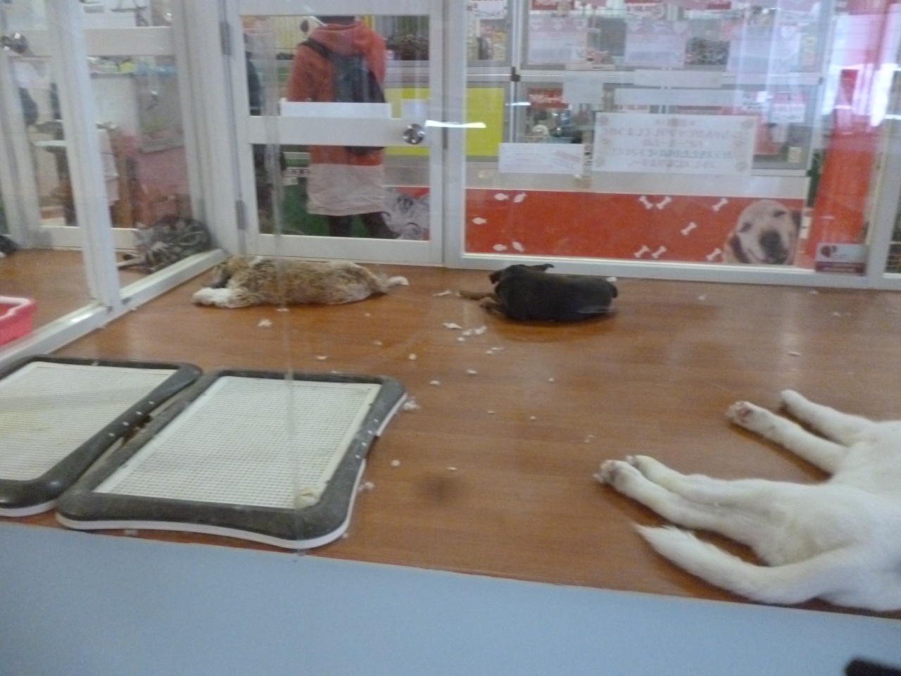 かわいいワンちゃん、ネコちゃんのほかに、ウサギ、ハムスター、フェレット、インコなどがいます。店内に入ると、独特の臭さがありますが、癒されるお店です。