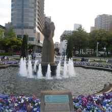 周囲は噴水に囲まれていてとても涼し気で、暑い夏場などは夕涼みに良さそうです