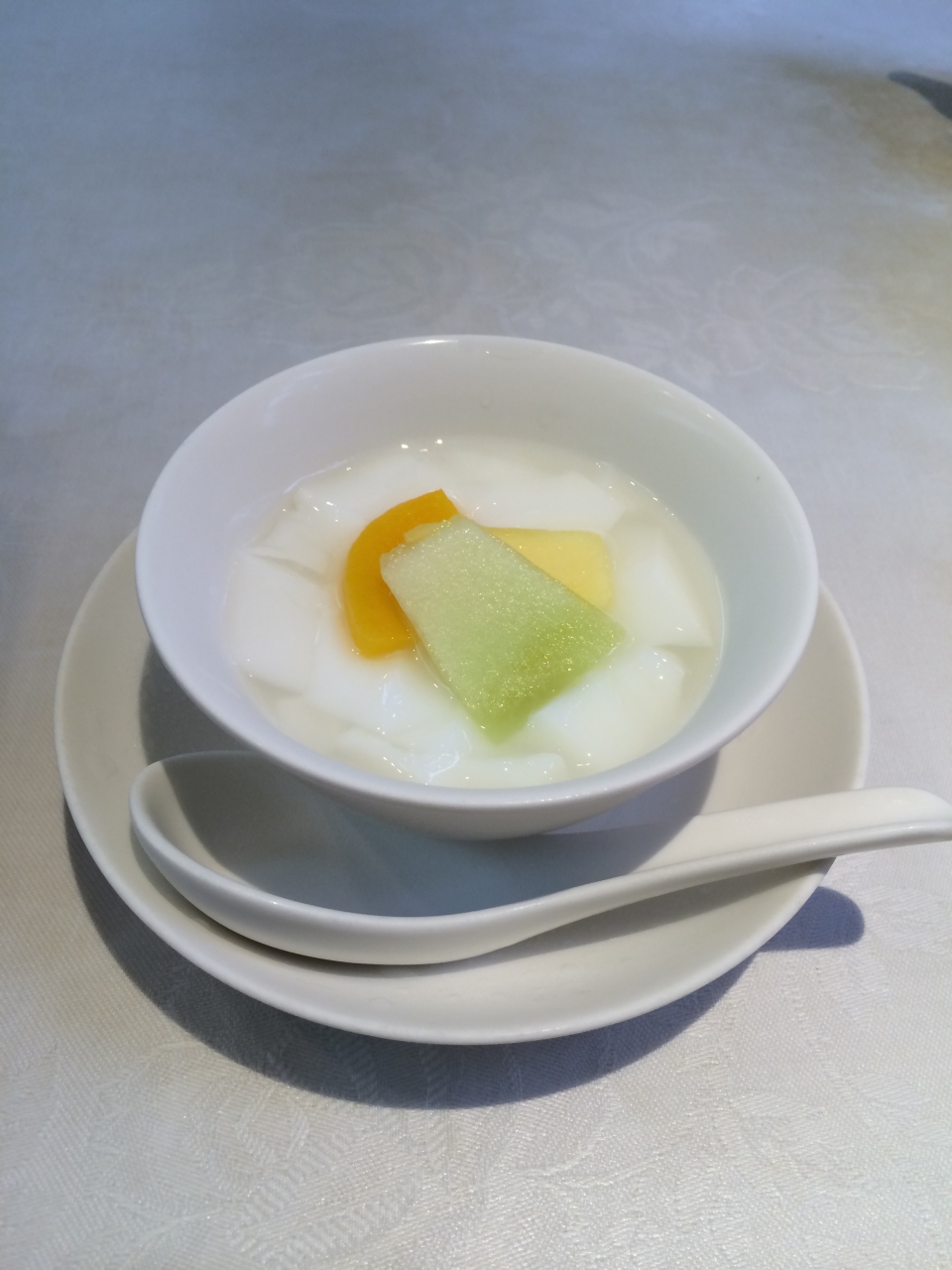 今週の定食《かに玉 甘酢添え1500円》を注文。卵が少し太めの繊維の様に炒められている。口にいれて驚いた。しっかり炒めてると思ったのに、フワフワしてるのだ。シンプルな味つけが本当に美味しい。赤い甘酢は上品な酸味。僕は半分に甘酢をかけて、残りをそのままで食べた。ちょっと醤油をつけても美味しいだろうね。最後のマンゴープリンも濃厚でフレッシュだった。