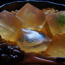 そしたら、ここって、こんな素敵なお店だったんですね。古民家を利用したのでしょうが、座敷の大きく開いた窓はお店へのアクセス道に向いてはいるんですが、その先の詫びた露地庭園を景色にしていて、なんともいい風情。感心していると頼んだわらび餅が出てきて、これも透き通ったわらび餅が黄な粉を映して、美しい。餡子をスプーンに一杯付けているのもにくいですねえ。