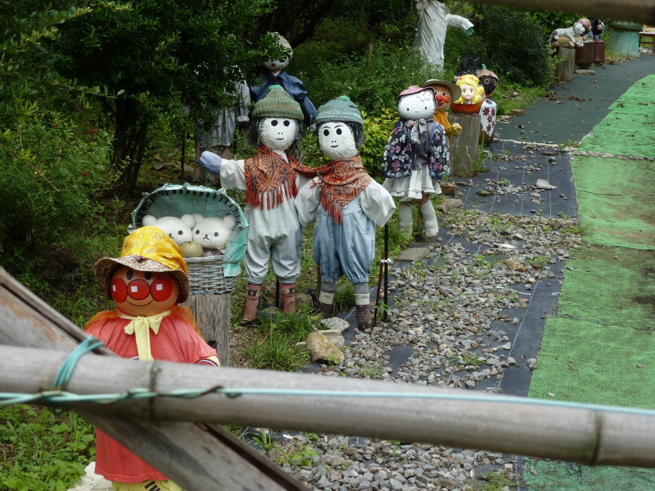 滝見台まで田舎道を歩きますが、途中に可愛い案山子がたくさんあり、