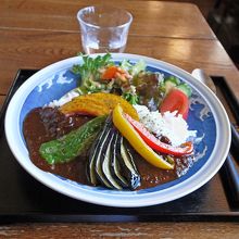 ニセコ駅は小さな駅だが,なんと駅ナカ喫茶店がある.レトロな雰囲気がニセコにあっている.込んでいなければ少しゆっくりしたい雰囲気がある.Aセット1250円をたのむ.サラダ,コーヒー付き.焼き野菜がおいしい少し甘めのカレーだった.おいしかった.