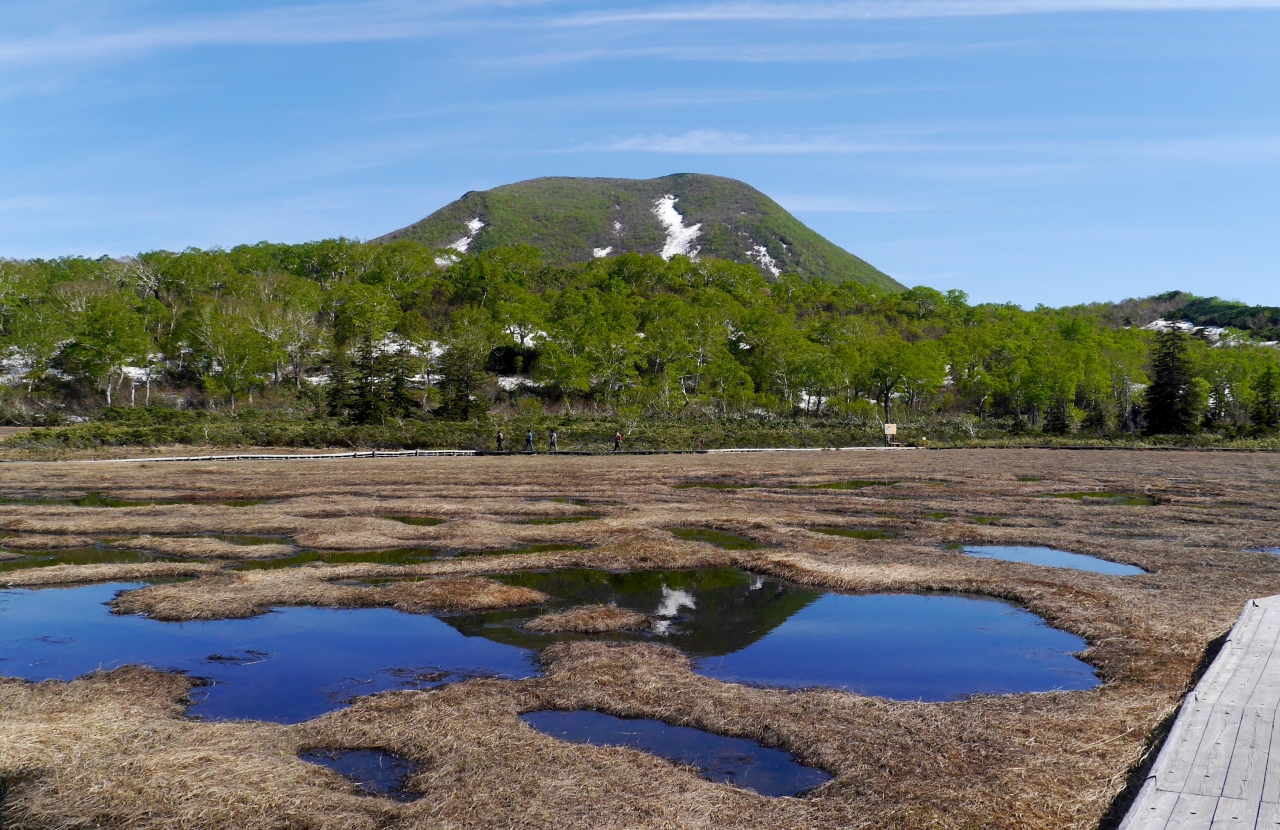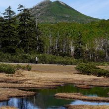 チセヌプリやニセコ連峰の山々を映し出す湿原の沼がきれい!
