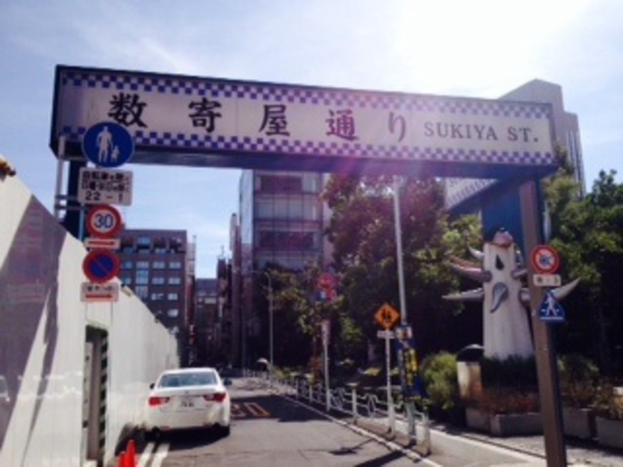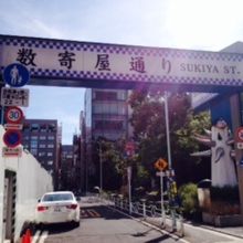 数寄屋橋公園内にある岡本太郎作の「若い時計台」が目印となる。公園の反対側は現在、工事中であるため、通りの入り口付近には、お店があるわけではない。工事が終わり新しい建物がでけきれば、人通りも増えるのではないかと期待する。