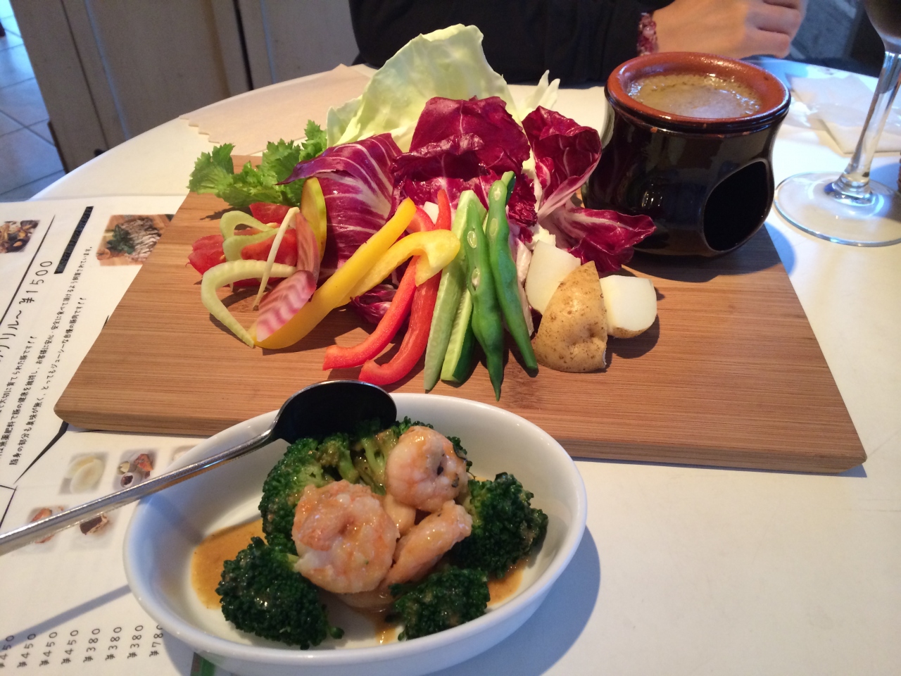 バーニャカウダーよりも、このエビとブロッコリーのマリネがおいしかった。