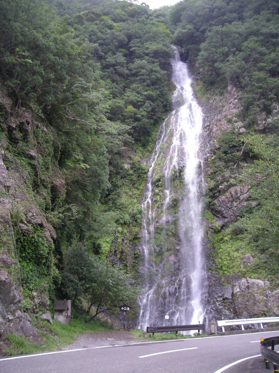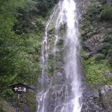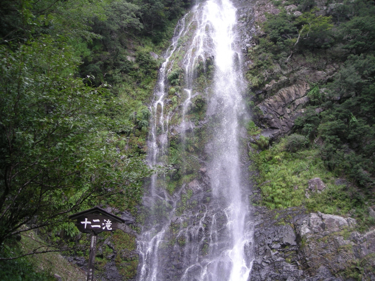 十津川温泉に行く途中に寄りました。国道168号線を南に走っていると突然右手に現れます。ガイドブックでは水量は少ないとなっていましたが、2日前の台風の影響で川の水は濁っていましたが、十二滝は迫力がありました。