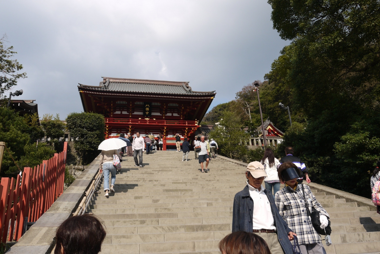 鎌倉の中心にあり外せないスポット。本殿までの階段は急ですが景色が良く、まっすぐにのびた参道と鎌倉の街。海までも見渡せるので上ることをお勧めします。