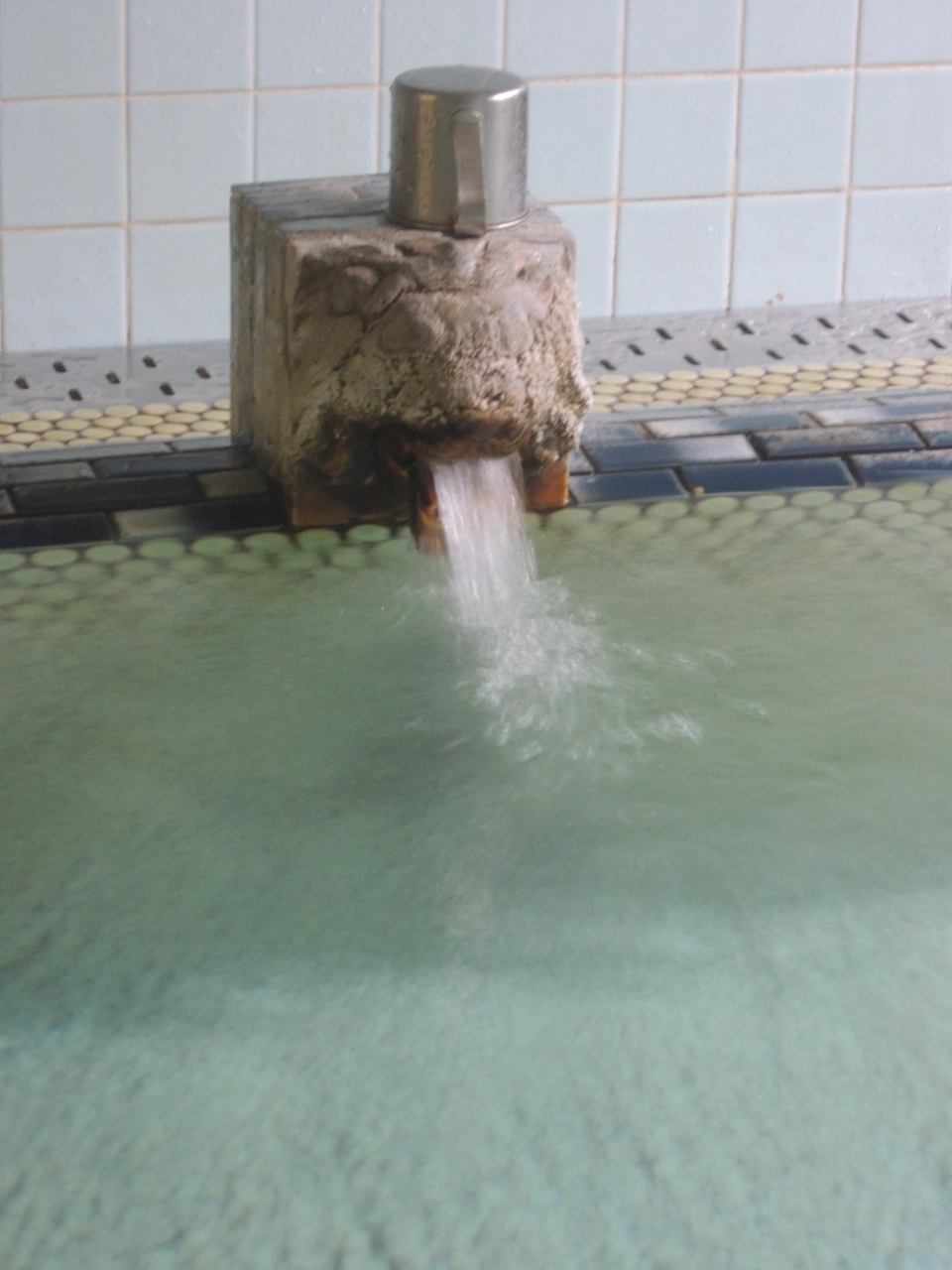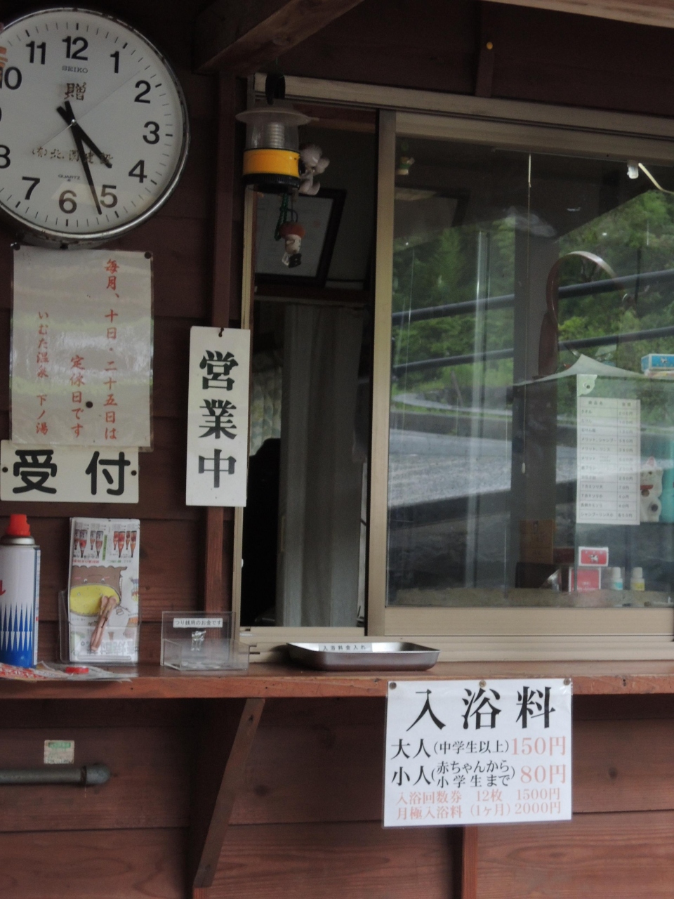 川風が入る気持ちいい、無色透明のサッパリとしたお湯、150円です。