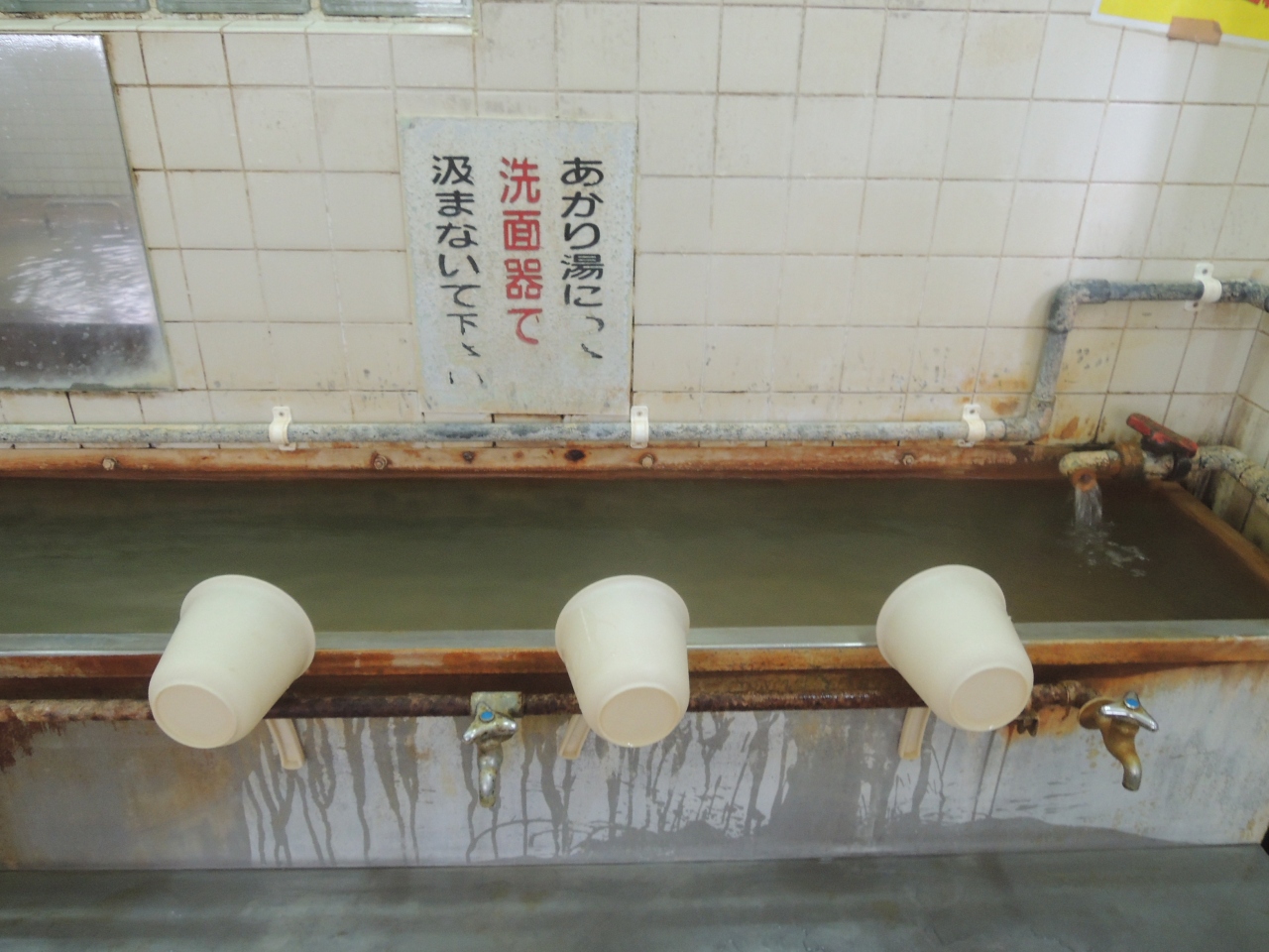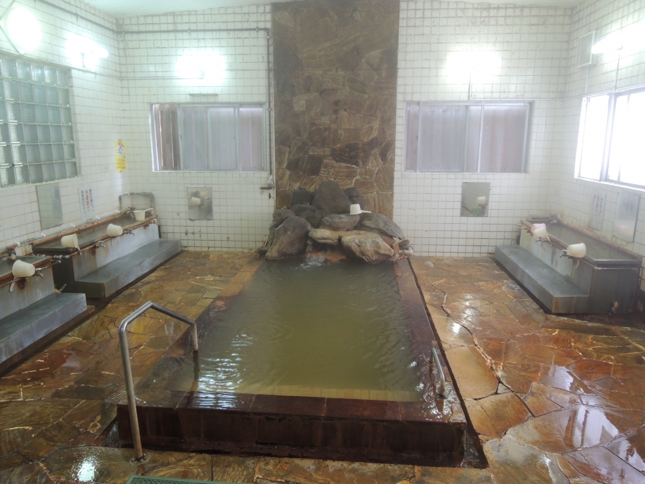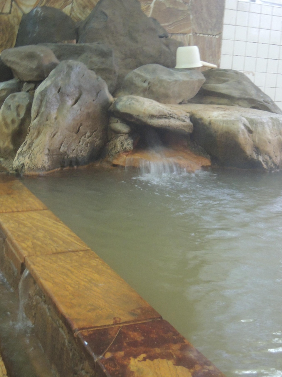 茶褐色の湯がナミナミと流れる出るお薦めの共同浴場。