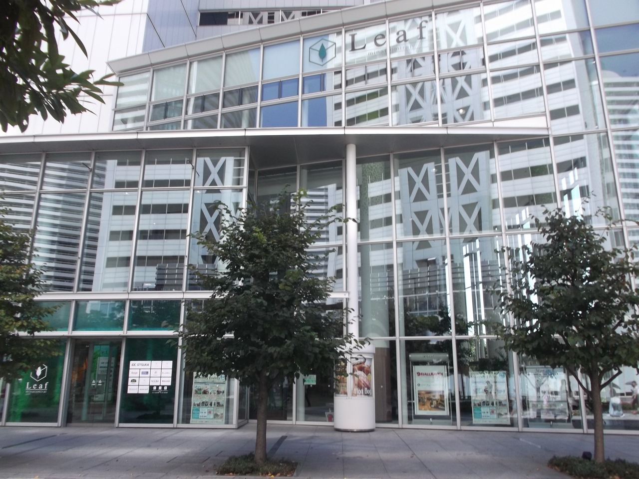 ここは大塚家具(4~12階)、1~3階がショップテナントです。1階ロビーはビル内公園風、彫刻(ザメッセンジャー)とカフェがあります。アウトドアの大型ショップがありますので