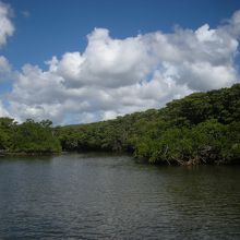 八重山諸島で一番大きく、一番森林が多い島”西表島”の東側というか南側の玄関口である大原港の近くに流れる西表島での第二の川がここ「仲間川」。この川には観光ではかかせない仲間川のマングローブなどをみることができるクルーズツアーがあります。このようなツアーにて、亜熱帯植物の雰囲気を味わってみました。なんでも、このツアーでは満潮の時間帯がよさそうですね。