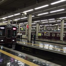 阪神、阪急共に日本では珍しくなった頭端式ホームで、使い勝手も悪くありません。構内には各種飲食店もあります。また、特に阪急の発着ぶりは圧巻。マルーン色の電車がこれでもかとばかりにどんどん出て行くのは鉄道にさほど興味がなくてもすごいなぁと思います。