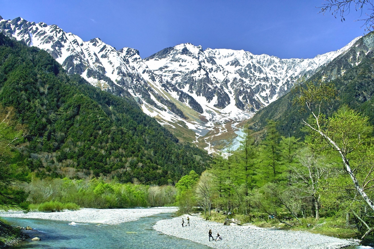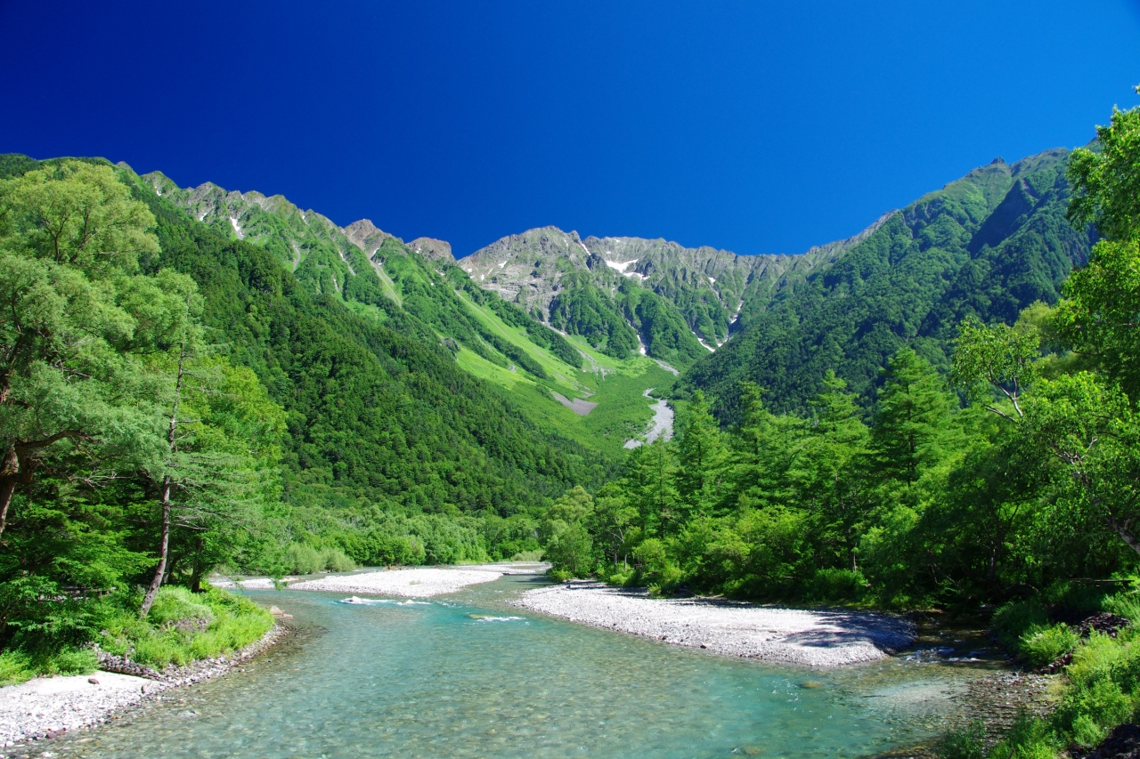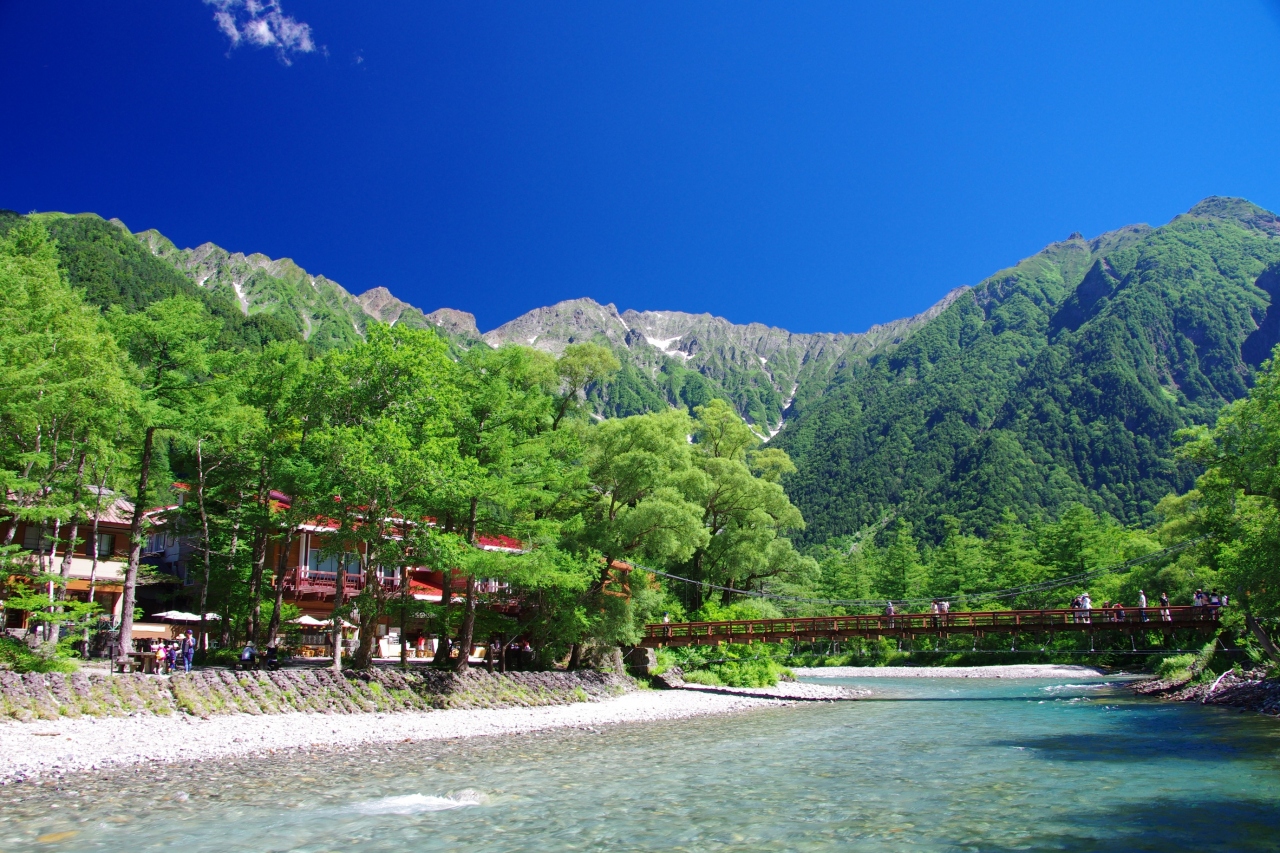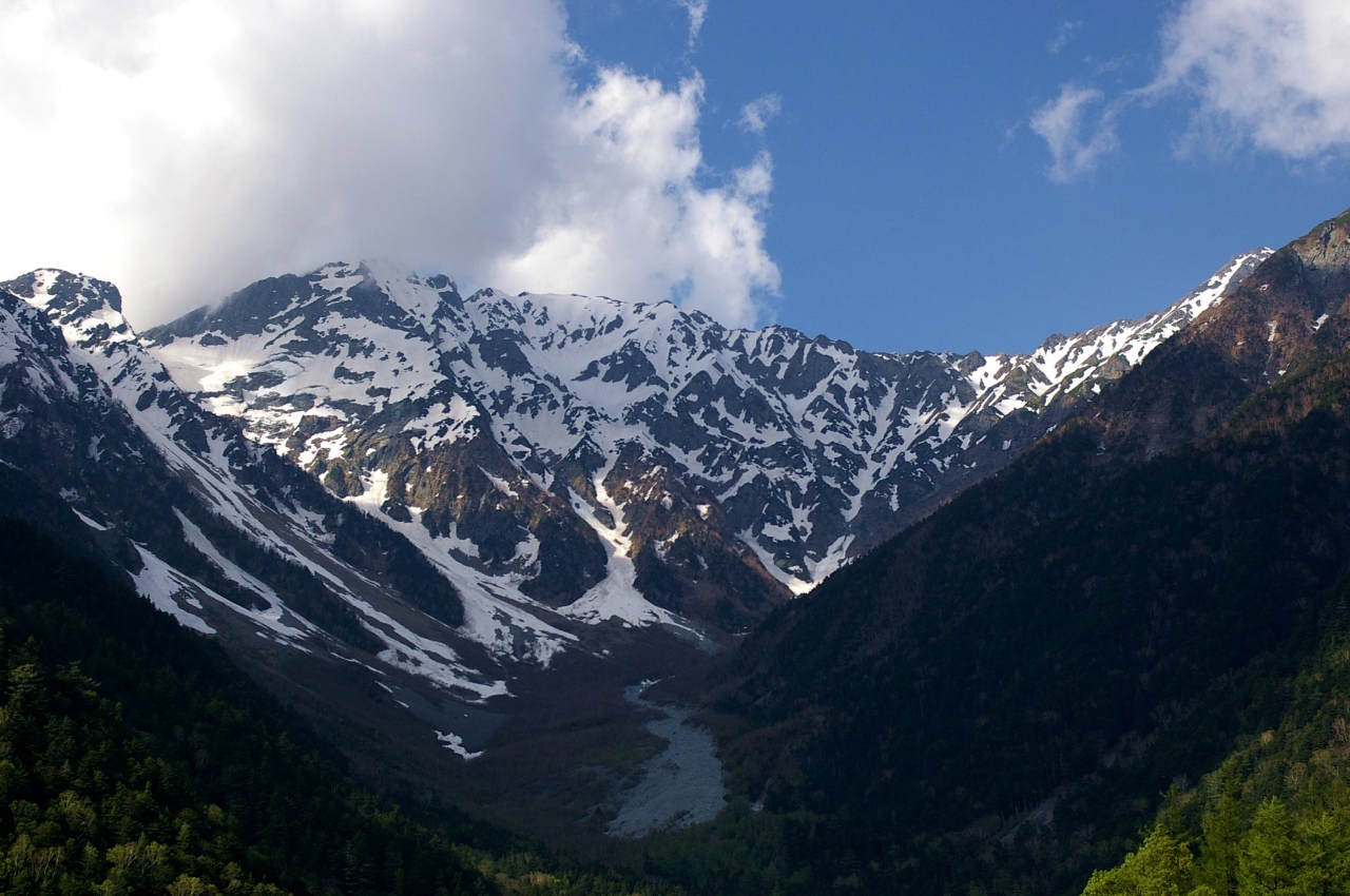 ここからの穂高連峰の眺め、特にまだ雪の残る5,6月の景色が大好きですが、夏の緑濃い穂高連峰もいですね。写真更新します。