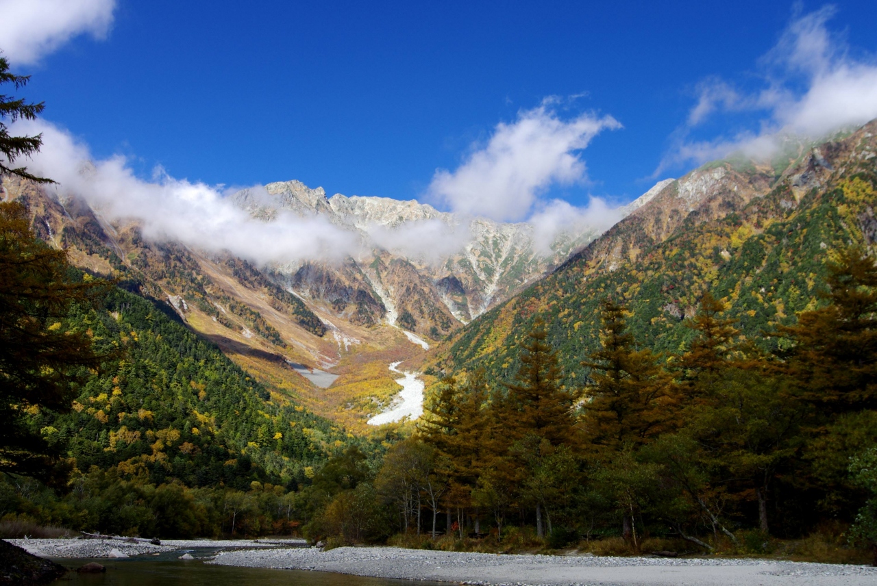 今年2度目、通算4度目の上高地。今回は焼岳登山を悪天のため変更しての上高地散策です。小雨混じりでしたが、明神池まで往復して戻ってくると運よく穂高連峰が姿を見せてくれました。河童橋のすぐ上流の岸辺から見るのが好きですが、何度見ても眼前に迫る穂高連峰の光景には衝撃を受けます。感動のひとことですね。