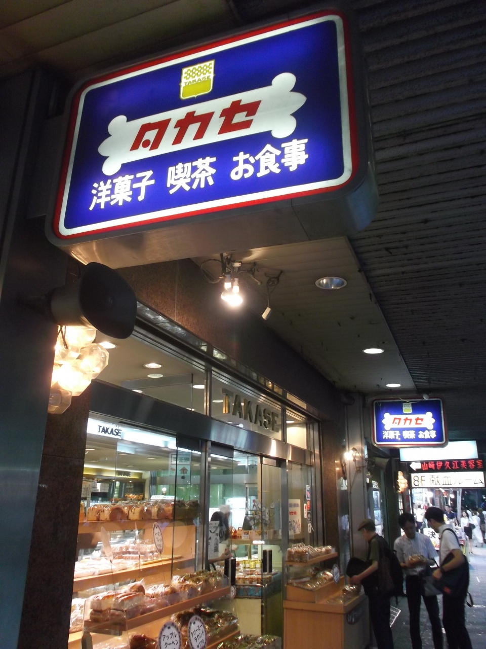 みなさん昭和の香りを感じられると懐かしむ方多いみたいです。店頭にはメロンバンなどの菓子バンと洋菓子類いろいろ。メニュー看板が出ています。2階は喫茶店・3階食堂レストランでしょうか。ここが池袋で名物的存在感のあるな「タカセ」の本店です。