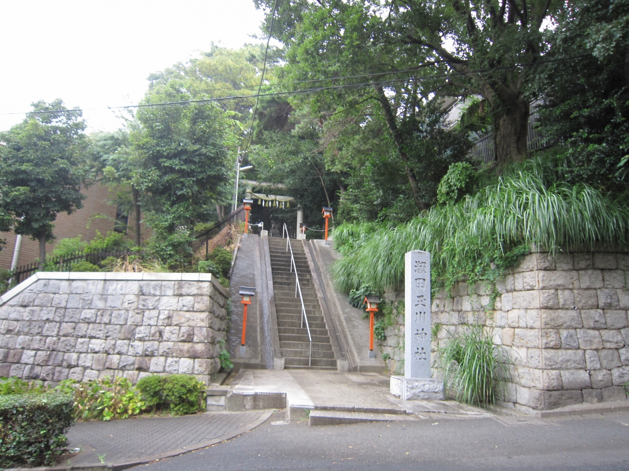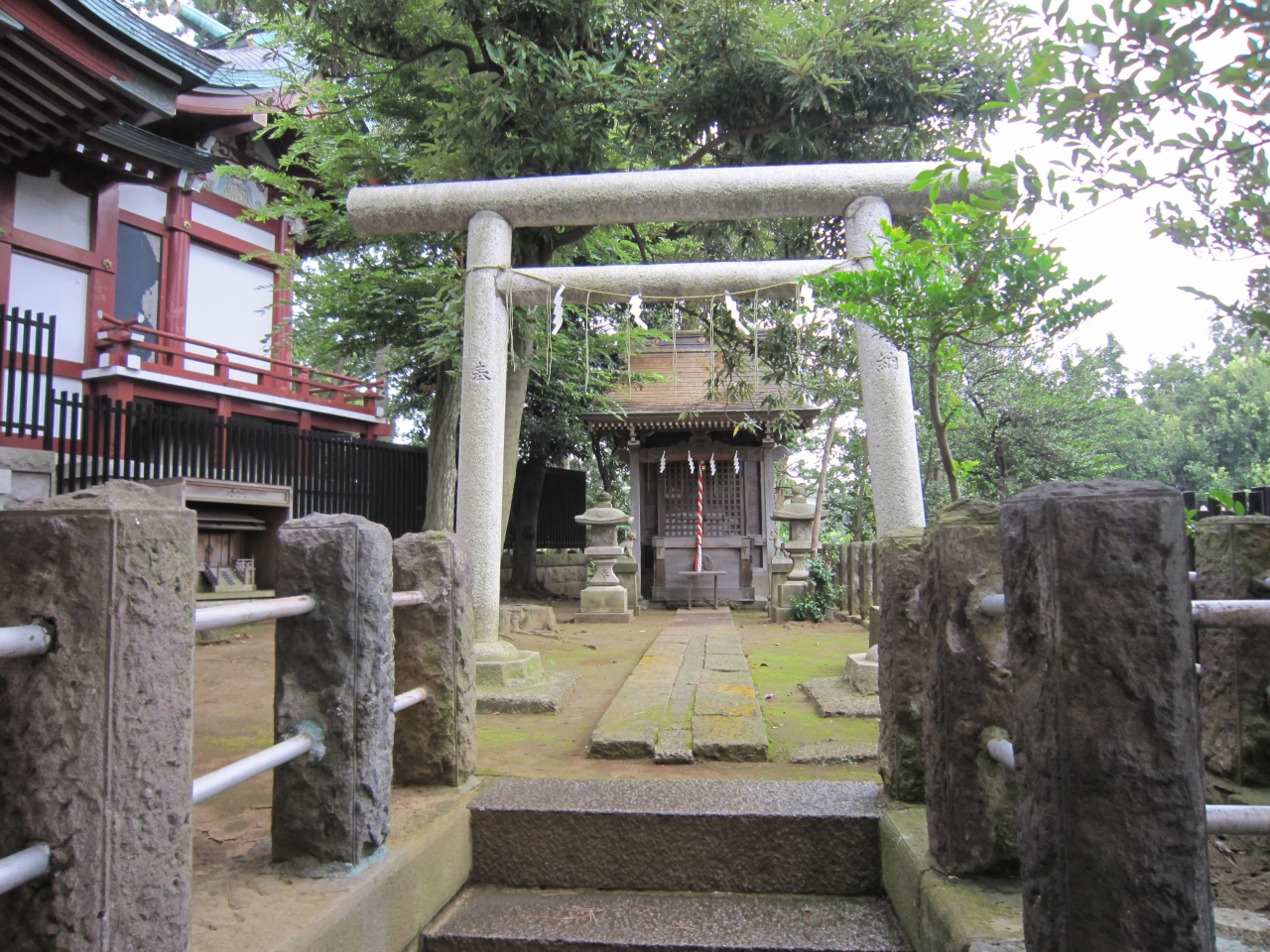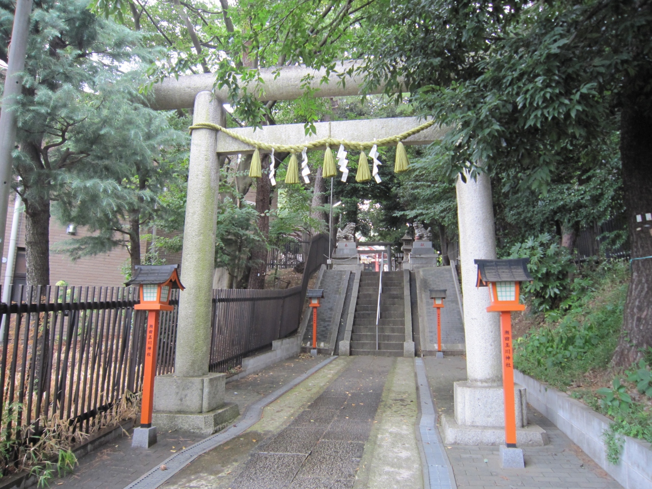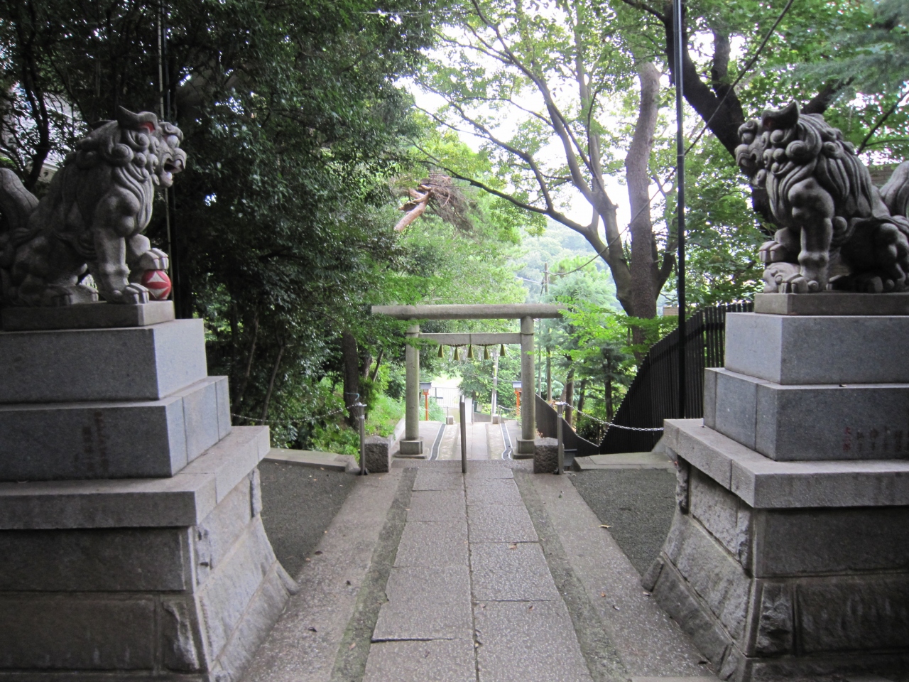 二子玉川駅から二子玉川商店街通りを用賀方面に真直ぐ行くとやや上り坂になり、神社名の石柱があり、そこの急な階段を上った先に社殿がありました。徒歩で約15分です。左側はマンションです。創建は約450年前で古い神社です。地元の氏神様のようで境内はひっそりしています。参拝時には手で鈴を振り邪気を祓います。奥には稲荷神社があります。用賀駅方面から来る場合、途中の道はややこしいですが坂を上らなくて良いです。坂の上の慈眼寺側からも行けます。ただ、坂を上り神社に参拝した方がご利益があるかもしれません。