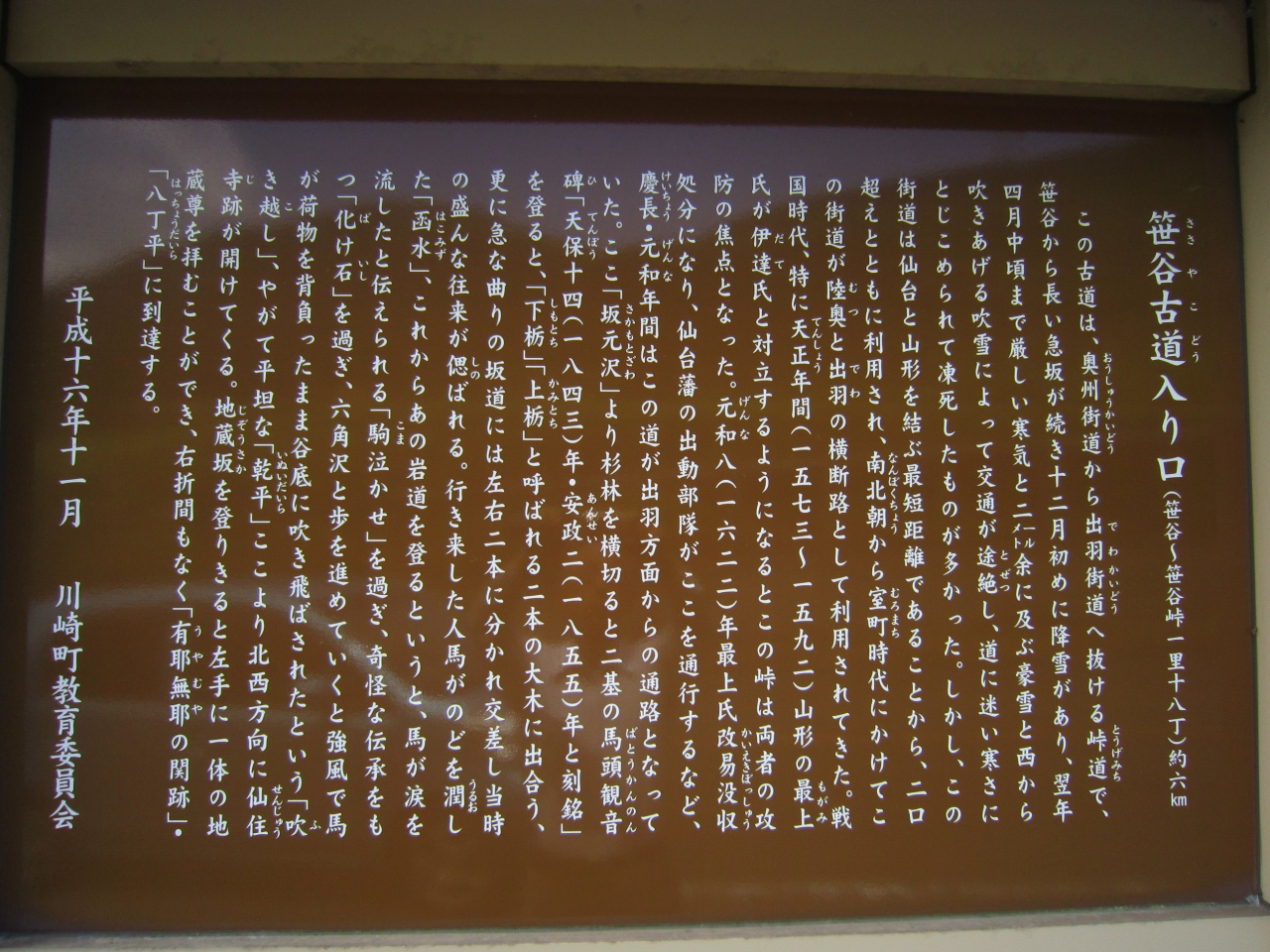 今でこそ山形自動車道ができて、仙台市と山形市は笹谷トンネルでうんと近くなりましたが、かつては笹谷街道を通るしかありませんでした。